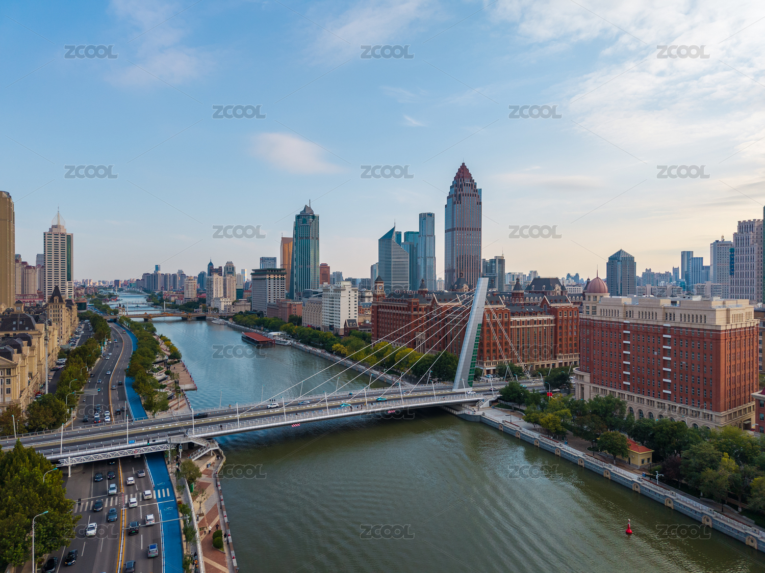 日落天津国泰桥海河沿岸城市建筑风光航拍