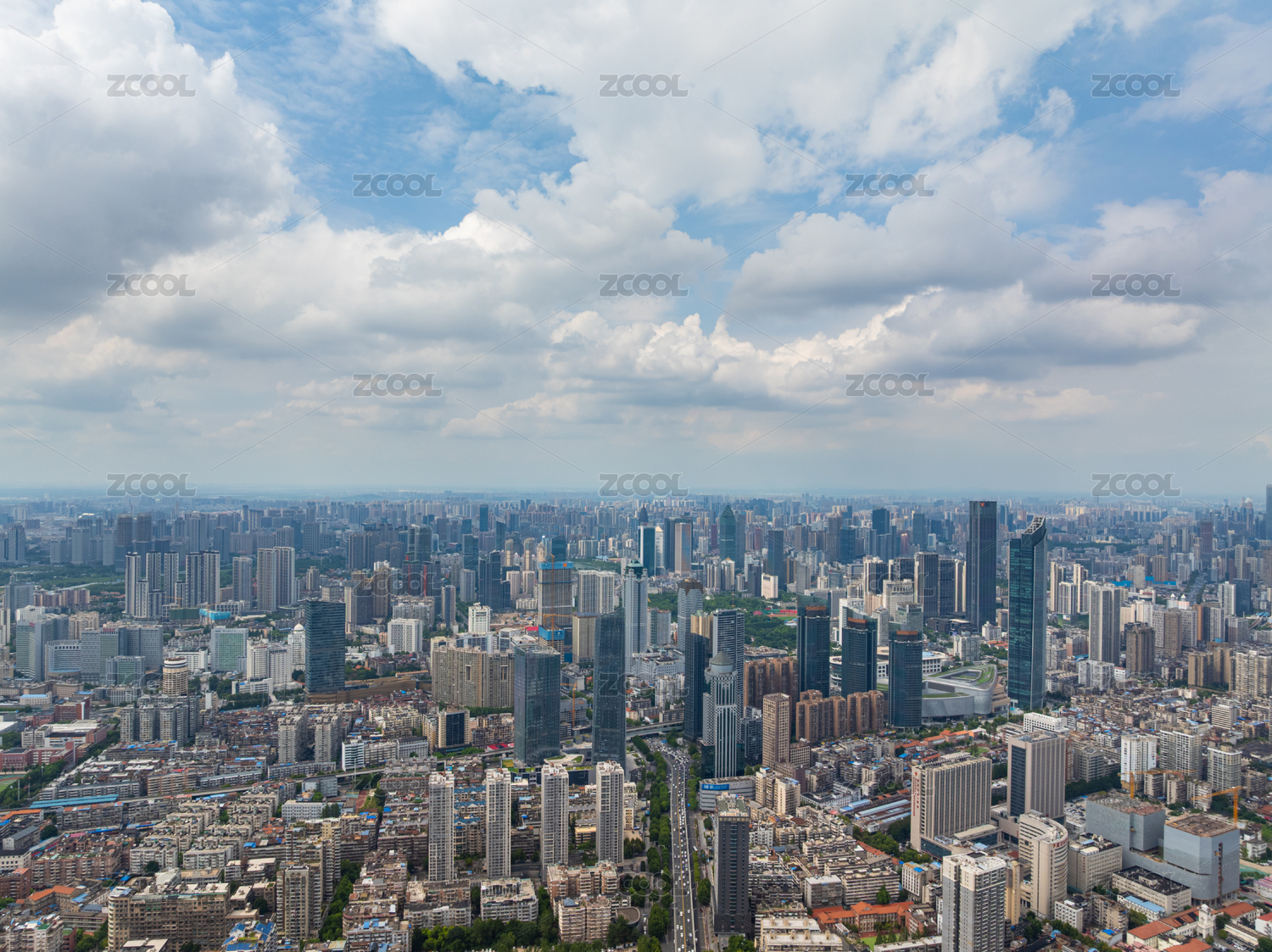 中国湖北武汉夏日城市天际线航拍风光
