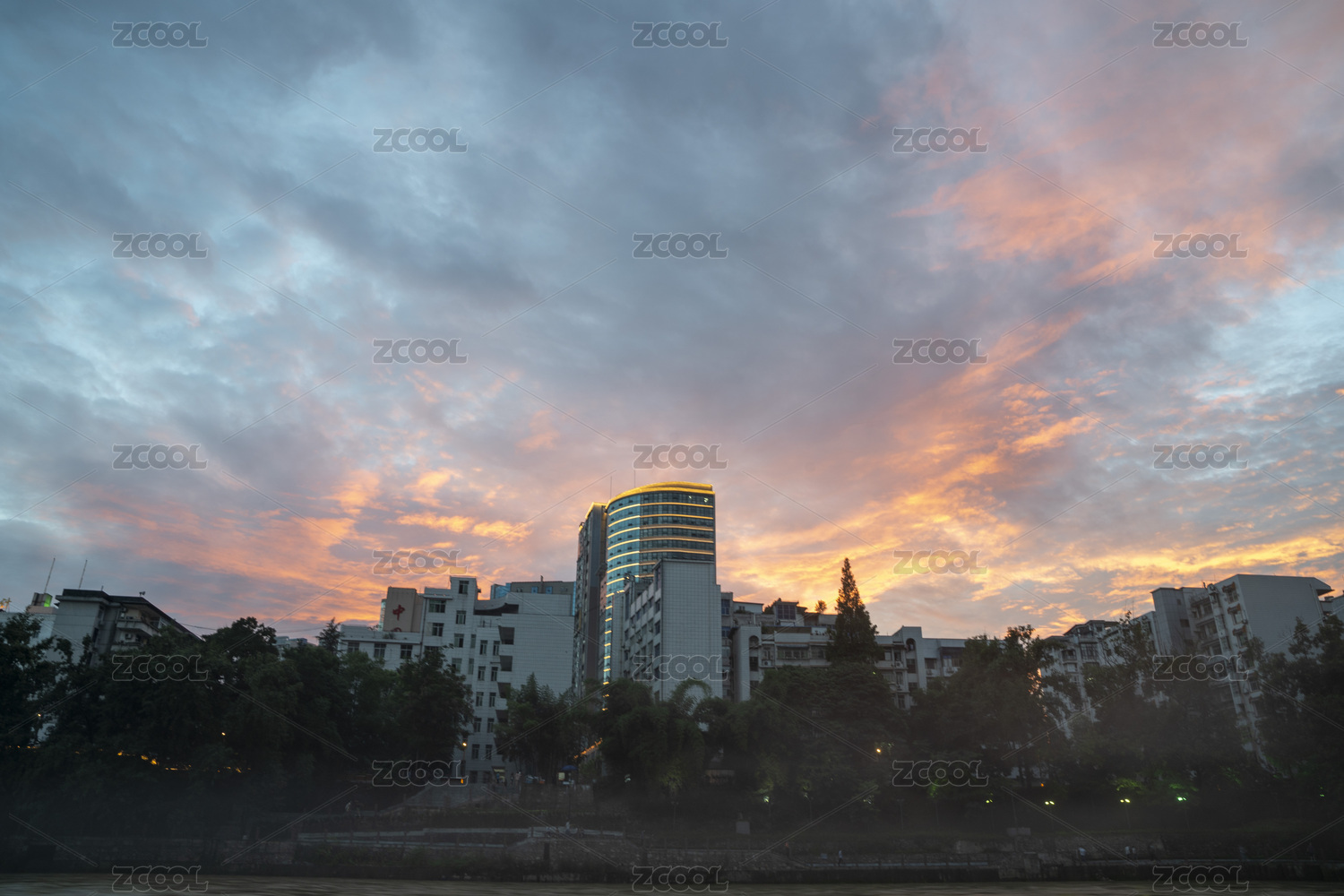 中国江苏常州新北区新桥镇傍晚天下的建筑群远景