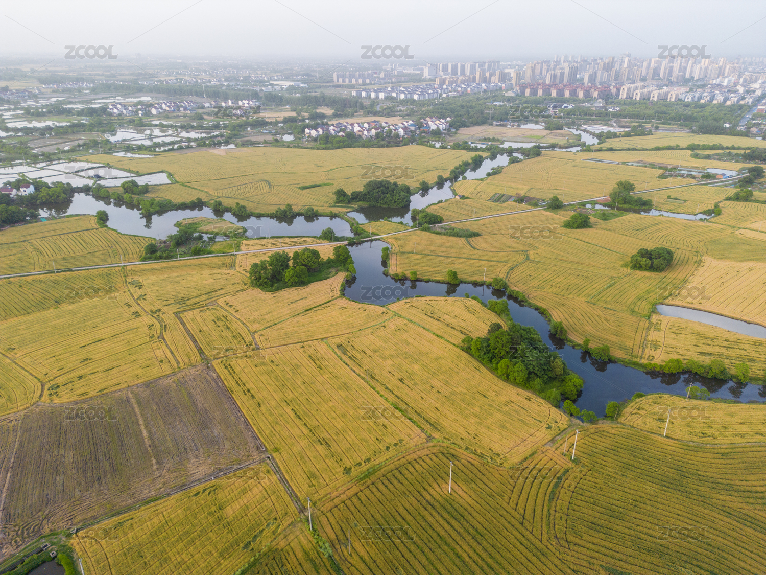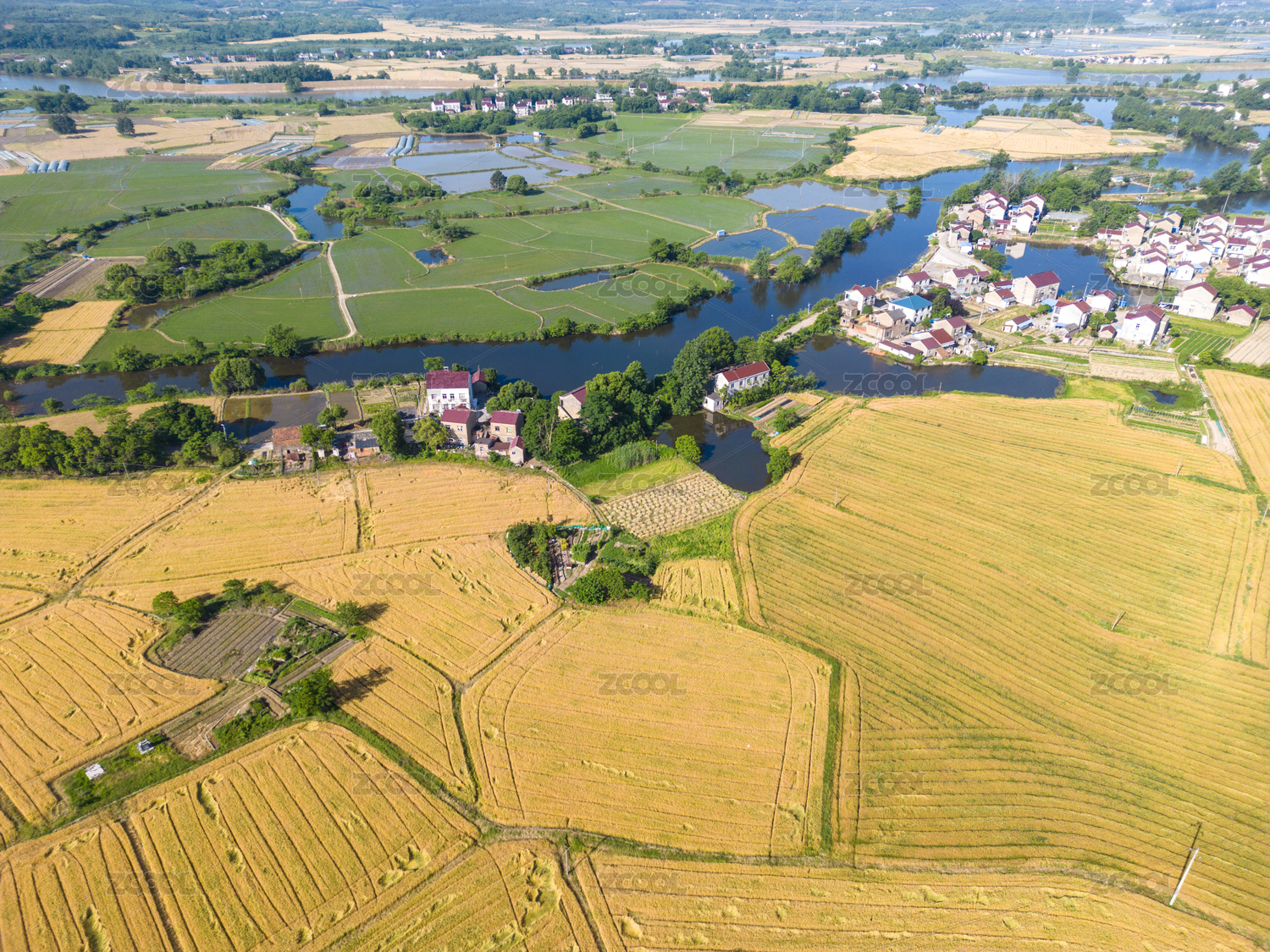航拍中国安徽宣城郎溪初夏乡村麦田风光