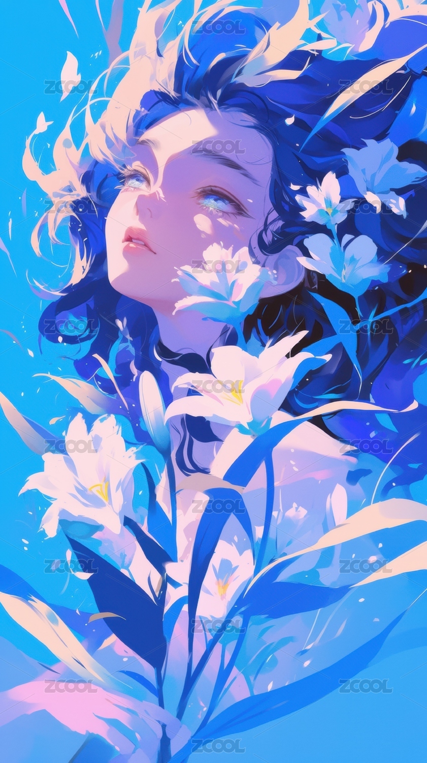 花朵女生插画壁纸