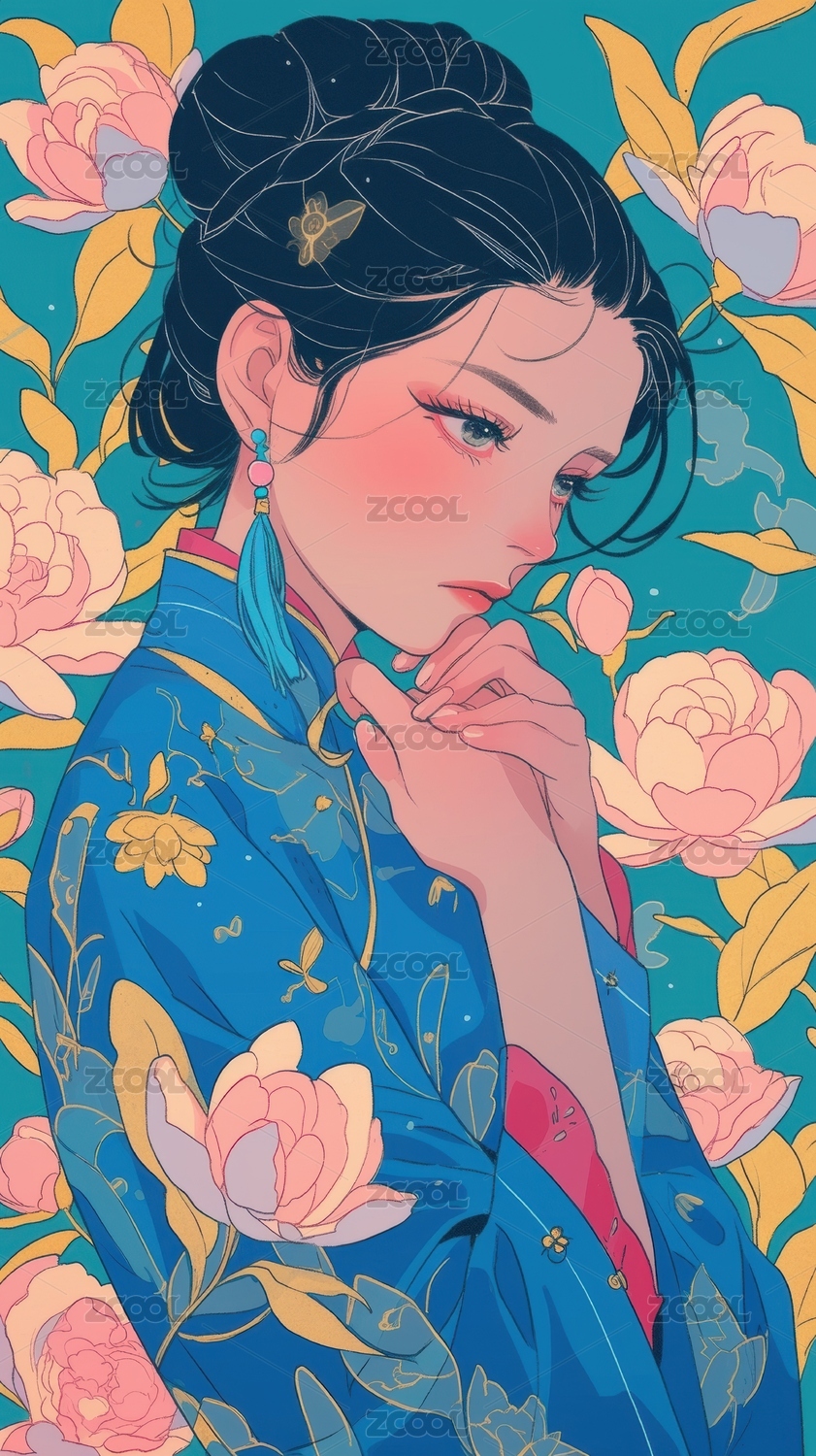 AI主题插画之国风女孩