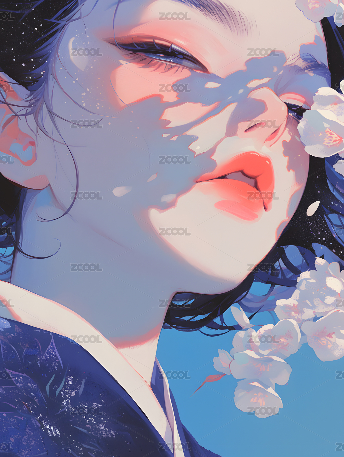 和服女子侧脸特写