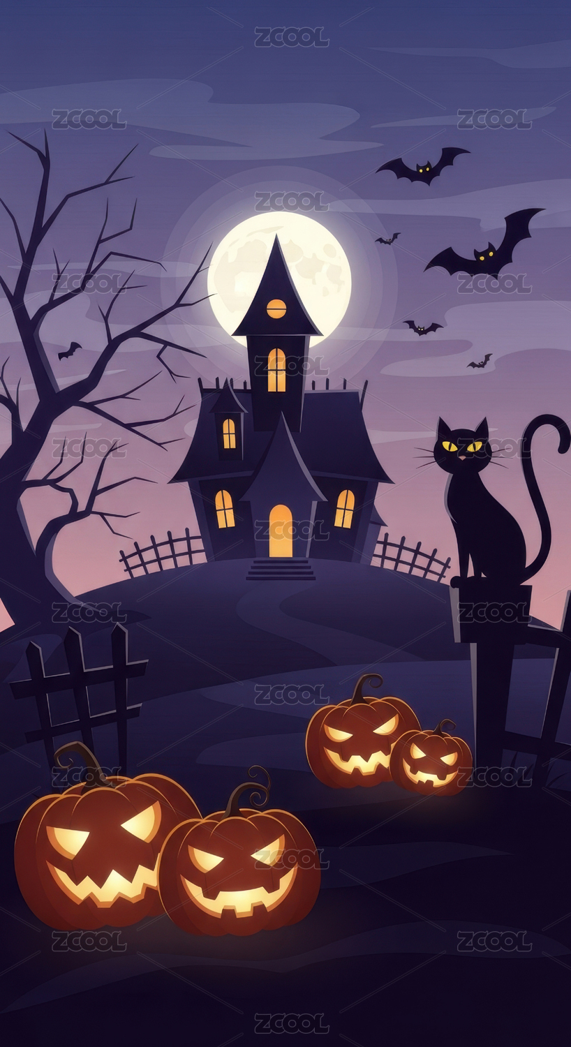 南瓜卡通万圣节派对房子插画背景