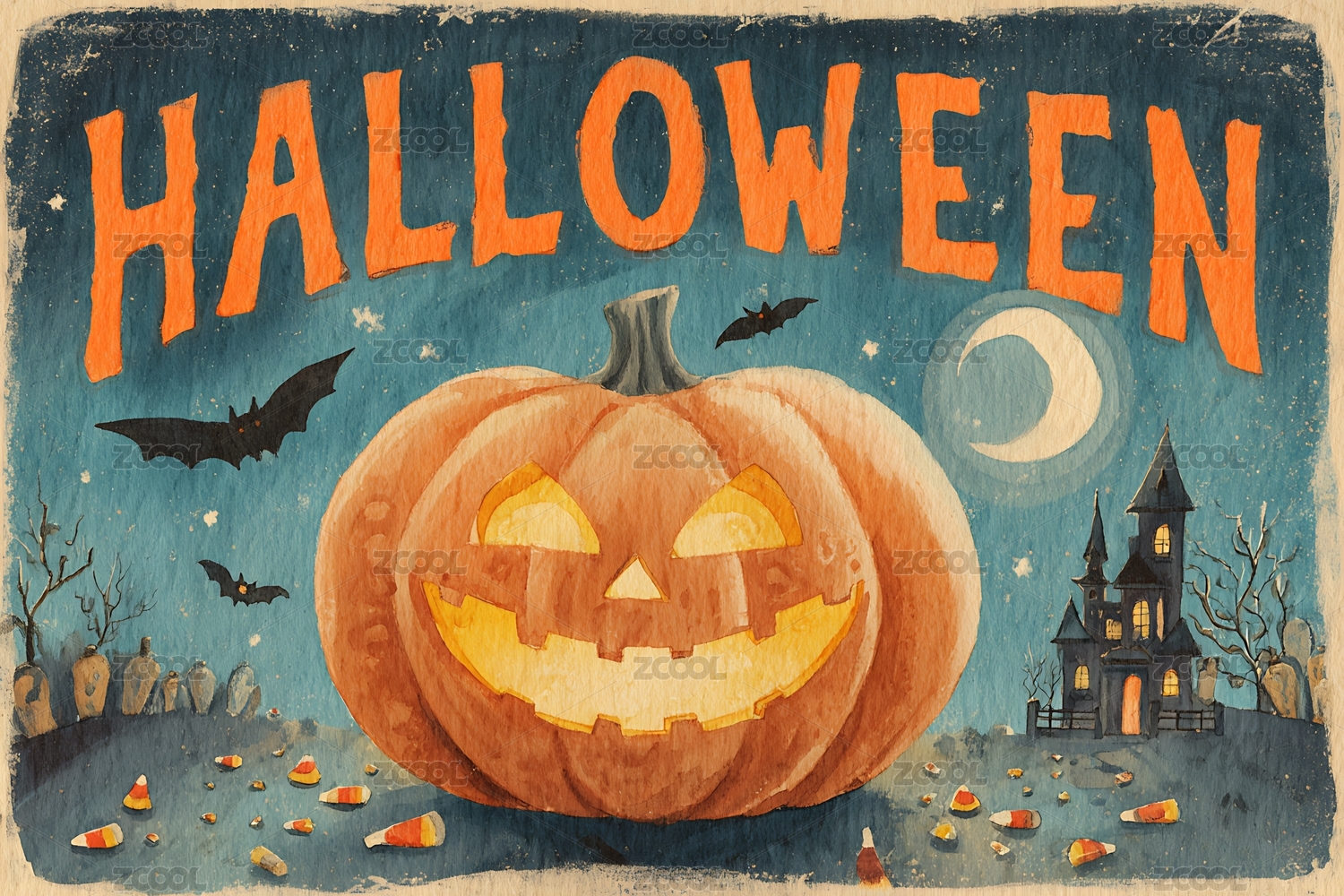 万圣节狂欢夜手绘卡通插画