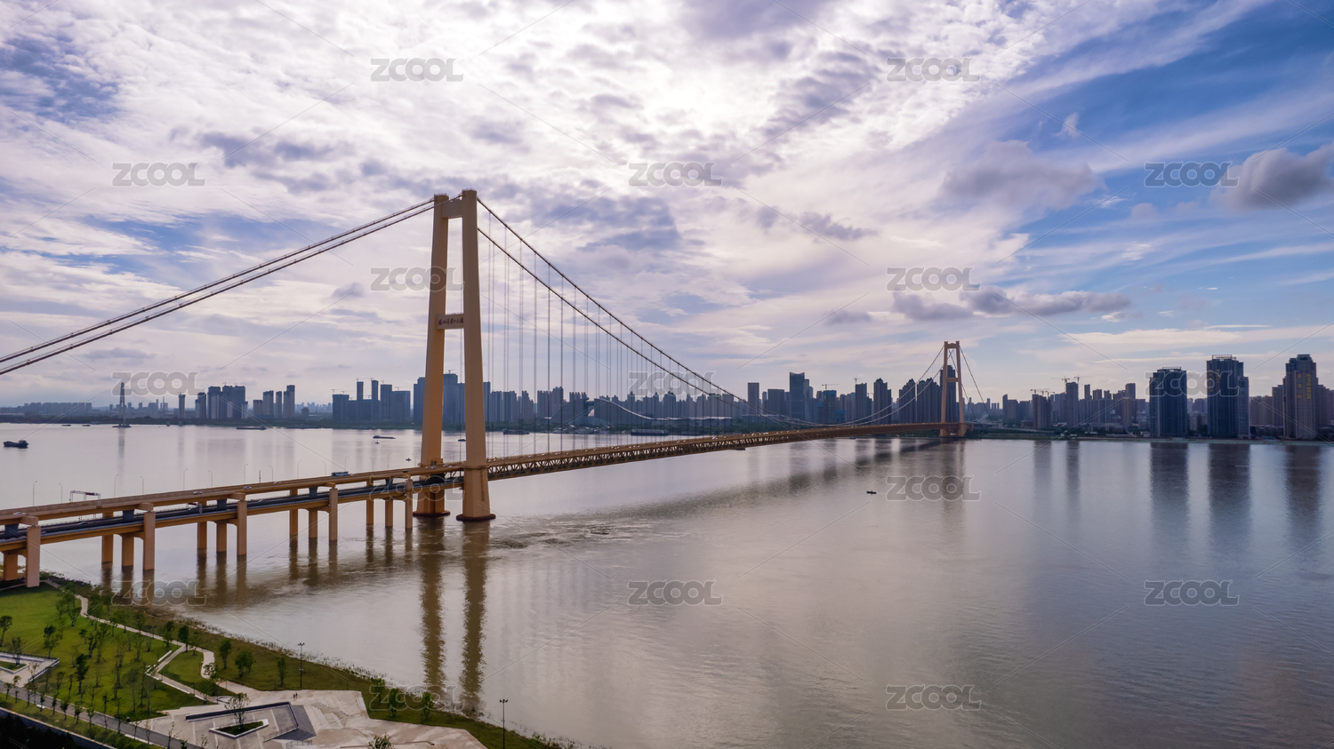 中国武汉鹦鹉洲长江大桥傍晚时光
