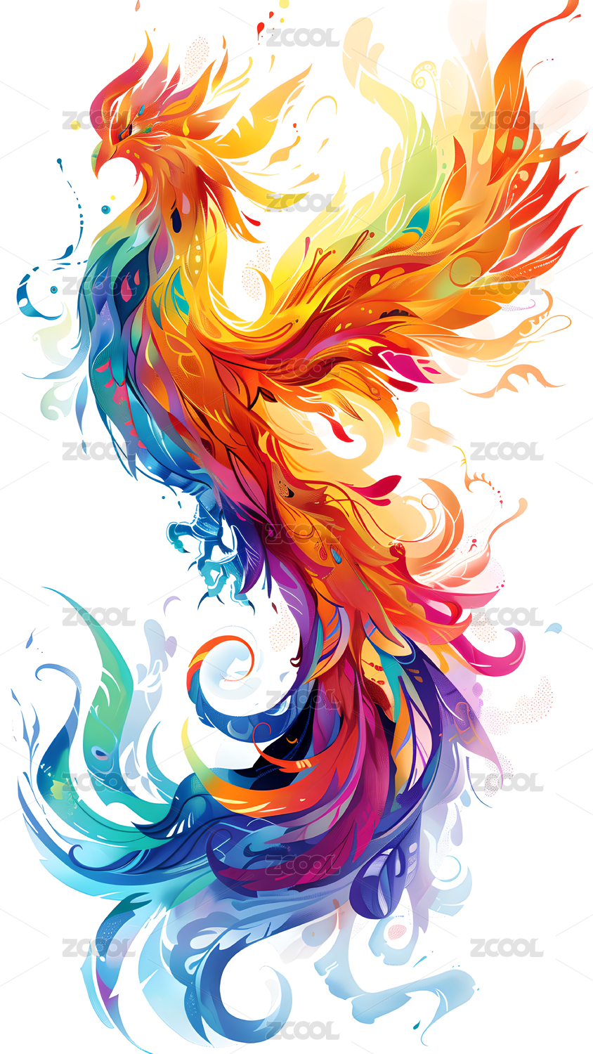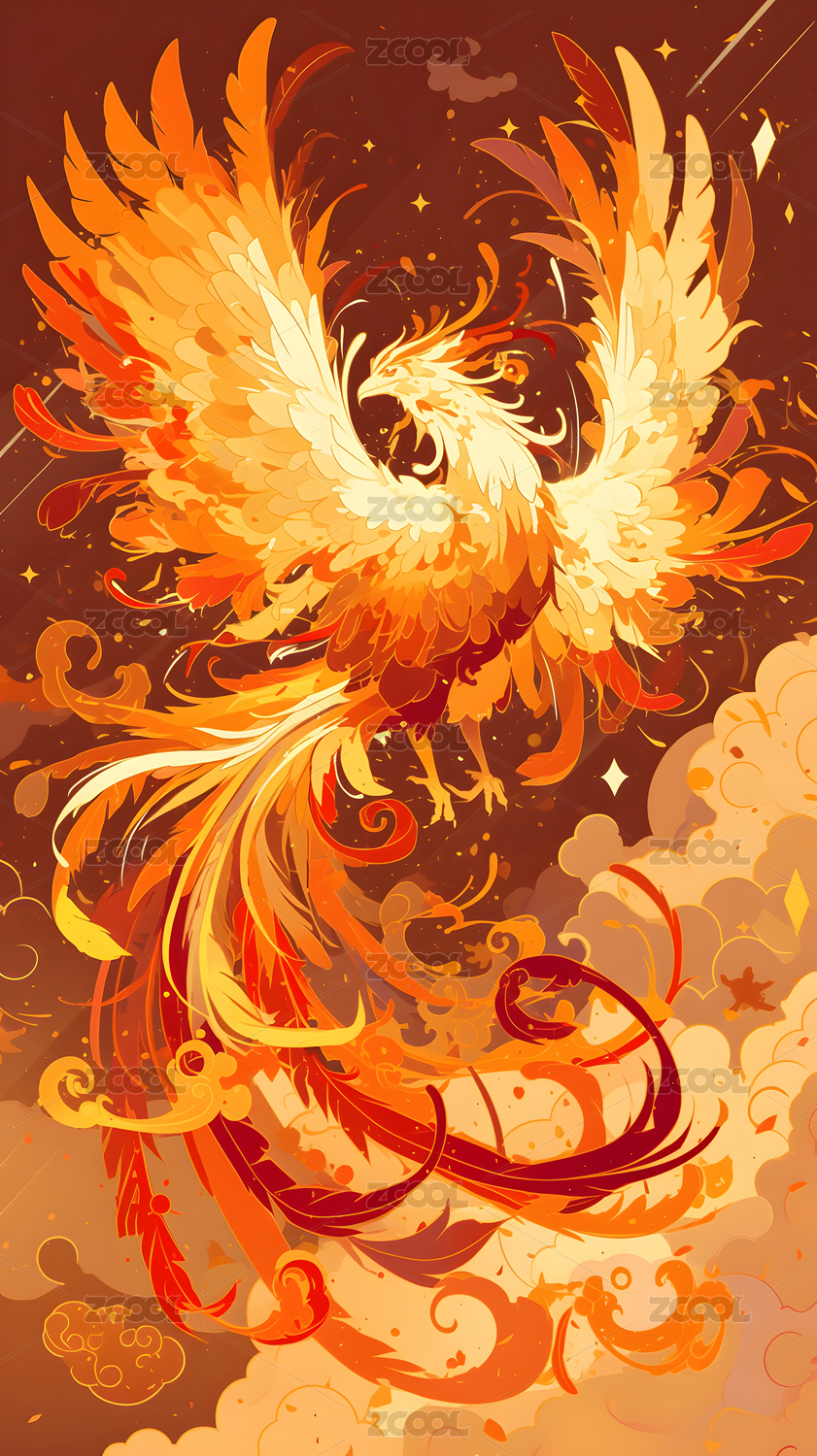 国潮动物凤凰展翅中式传统吉祥纹样色彩明亮