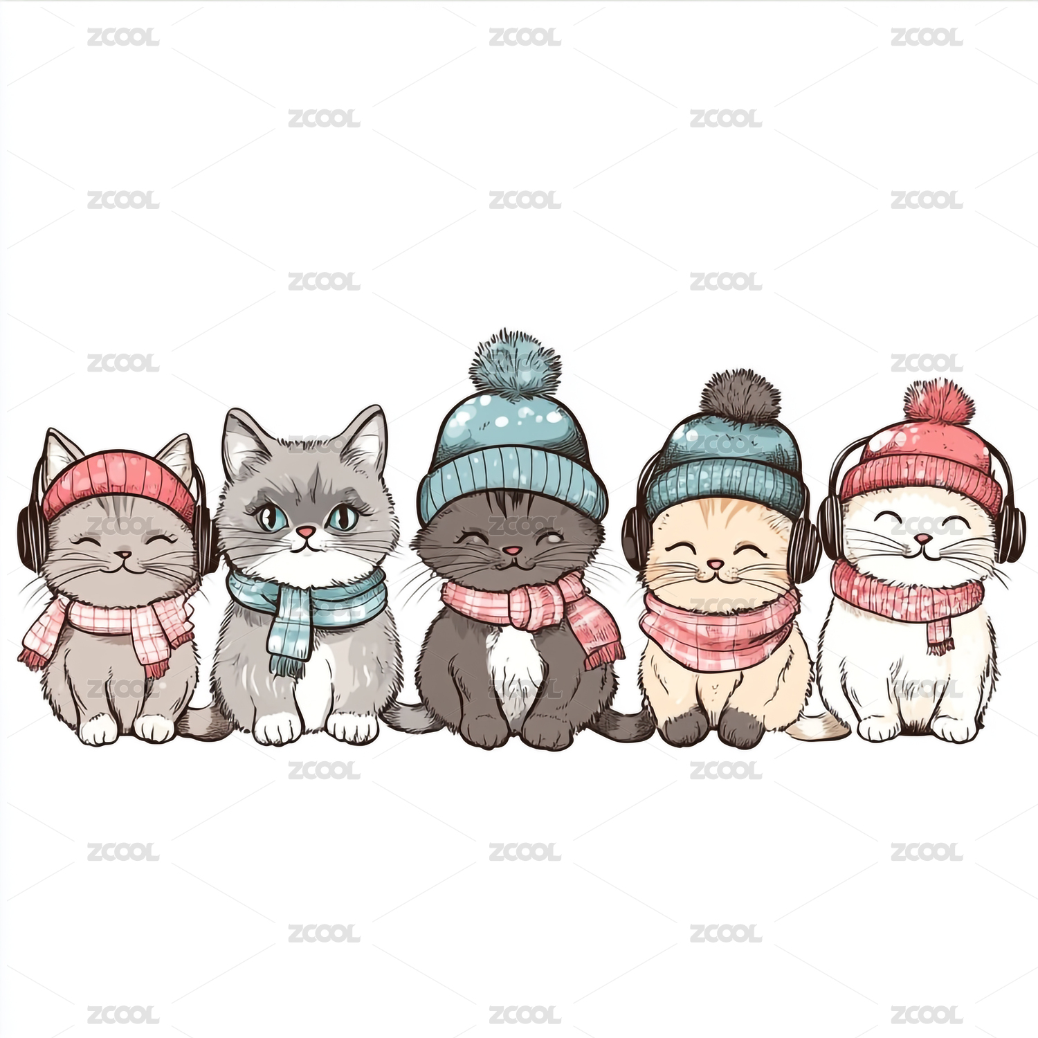 卡通绘本风格戴着帽子围巾的小猫拟人形象
