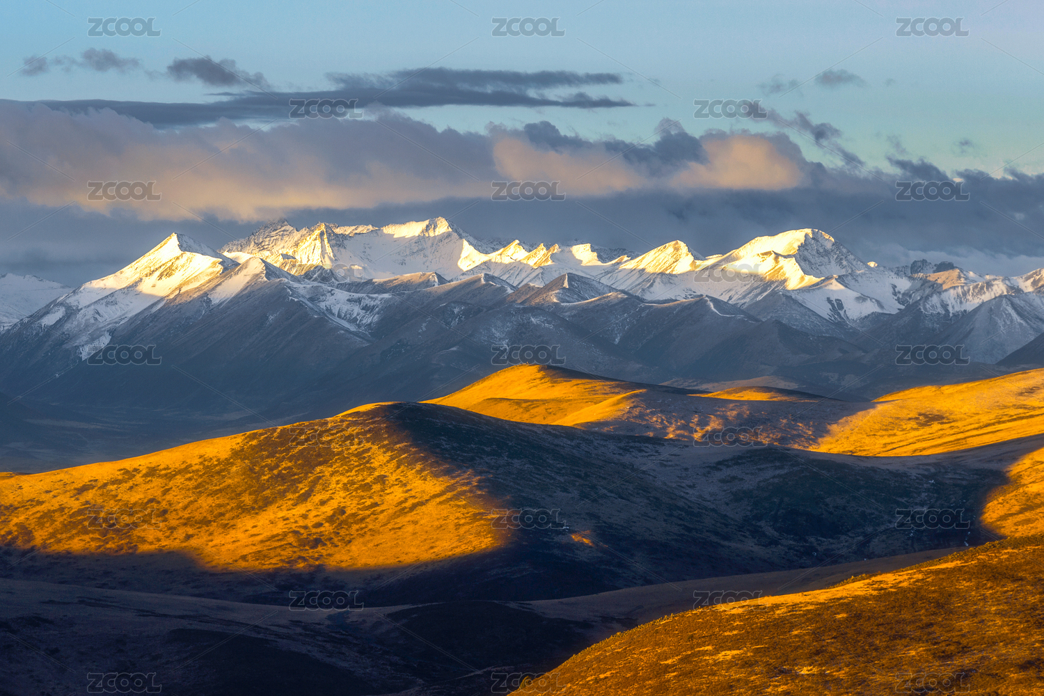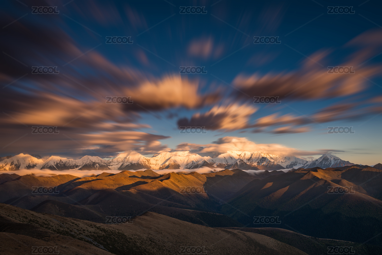 四川甘孜藏族自治州黑石城眺望贡嘎群山日落