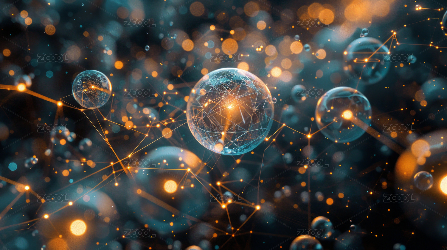 悬浮的发光球体网络结构