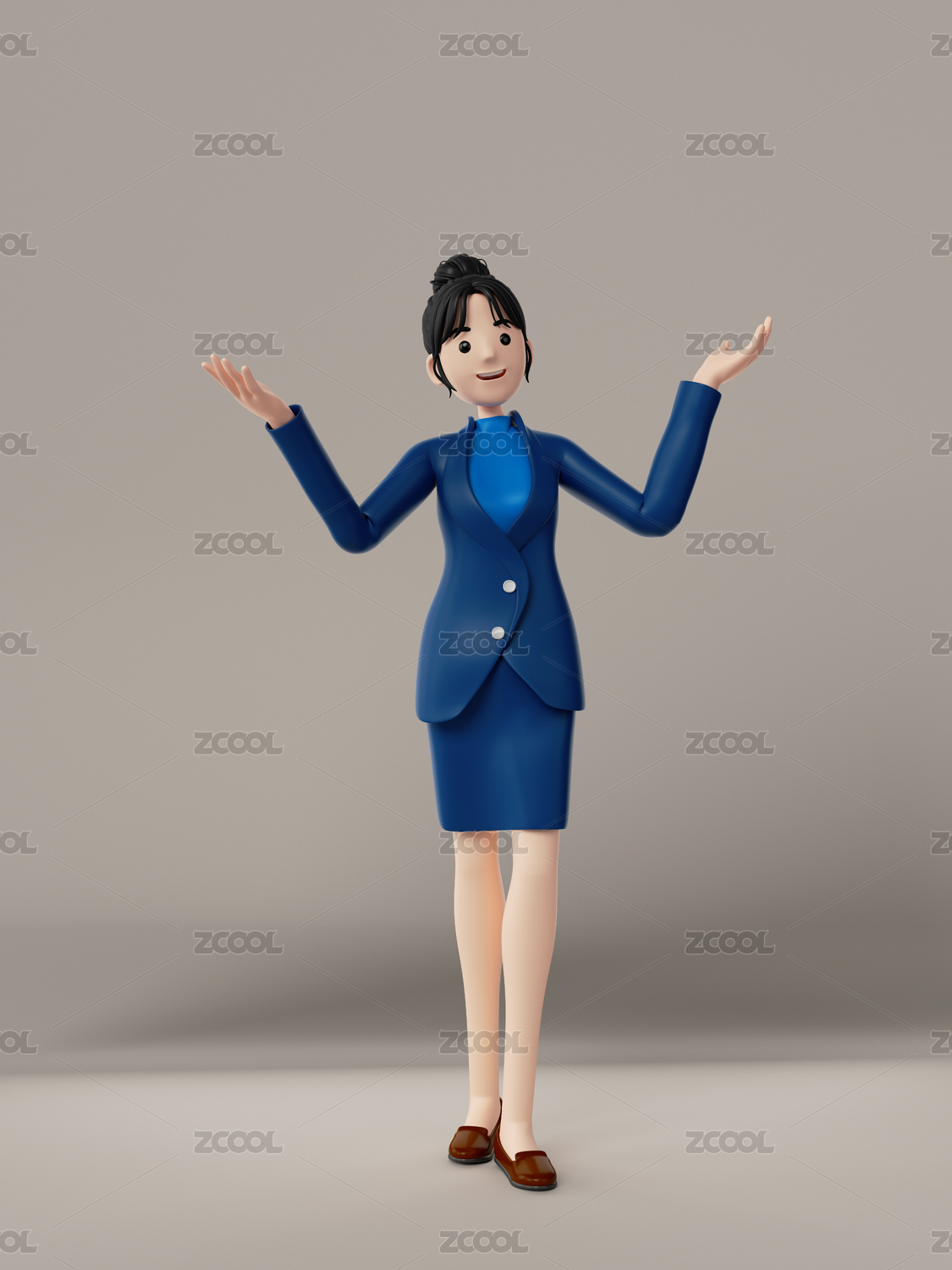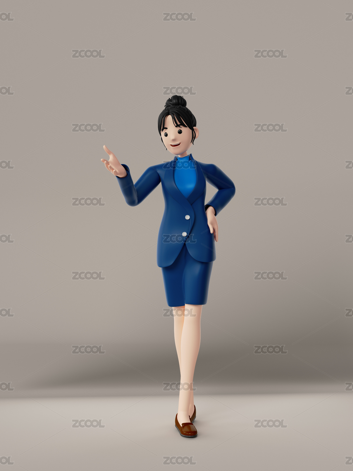 三维渲染的卡通商务女性