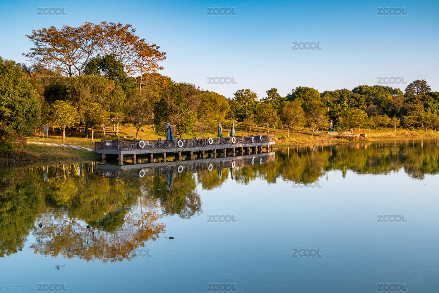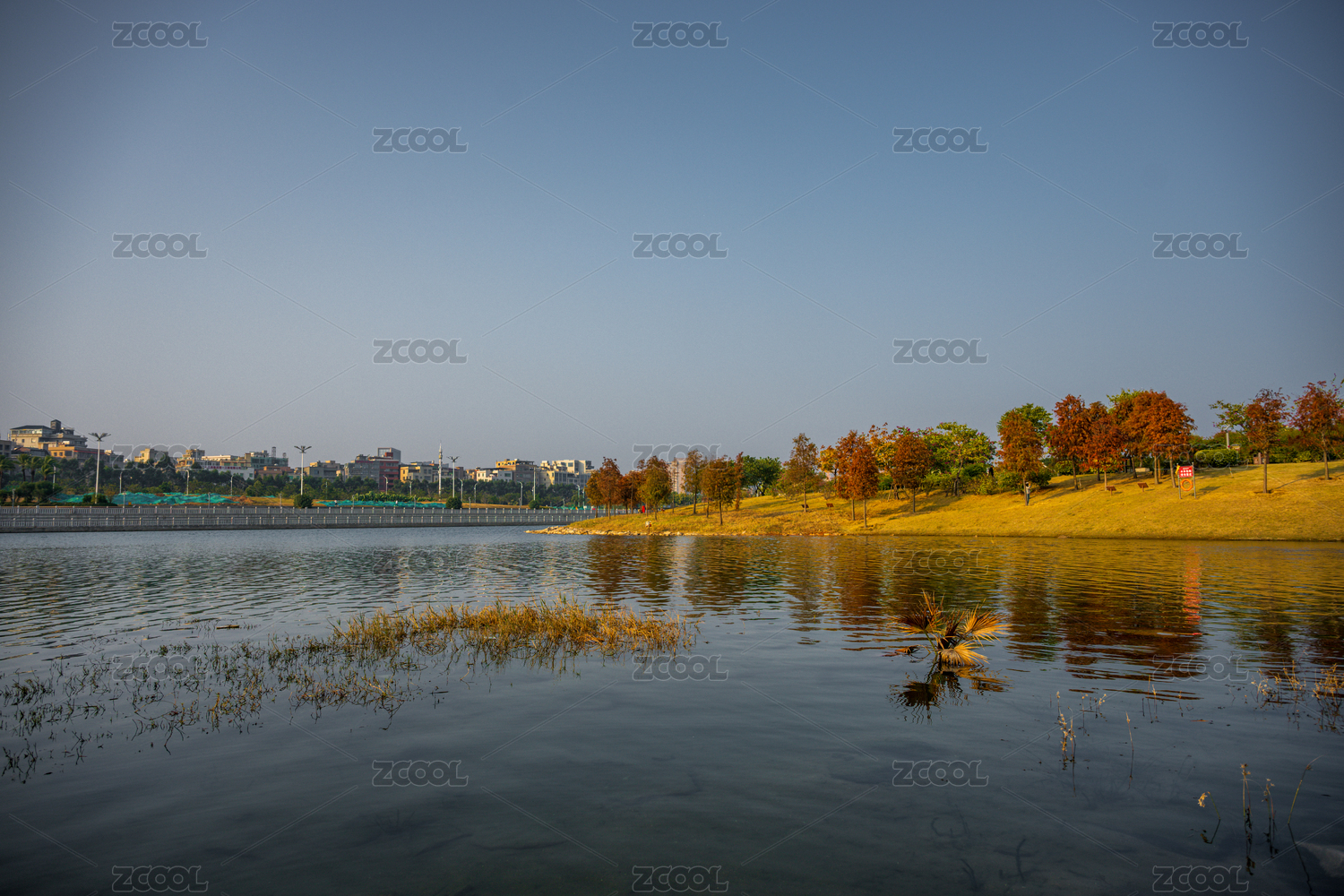 福建厦门马銮湾公园秋日湖畔的静谧风光