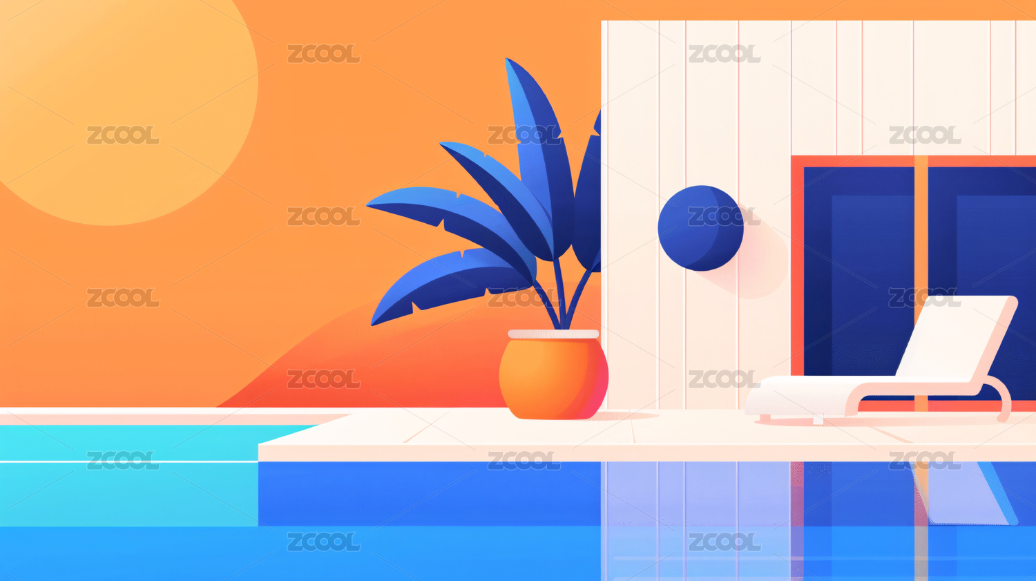 夏天游泳池度假村旅行放松高温解暑假期插画