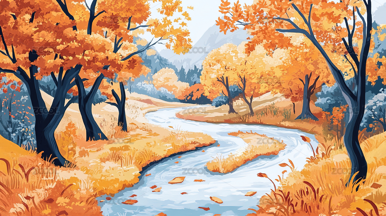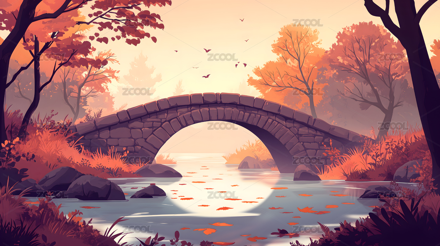 自然,小桥,森林,秋装,诗意,溪流,金黄,宁静,树木,林间
