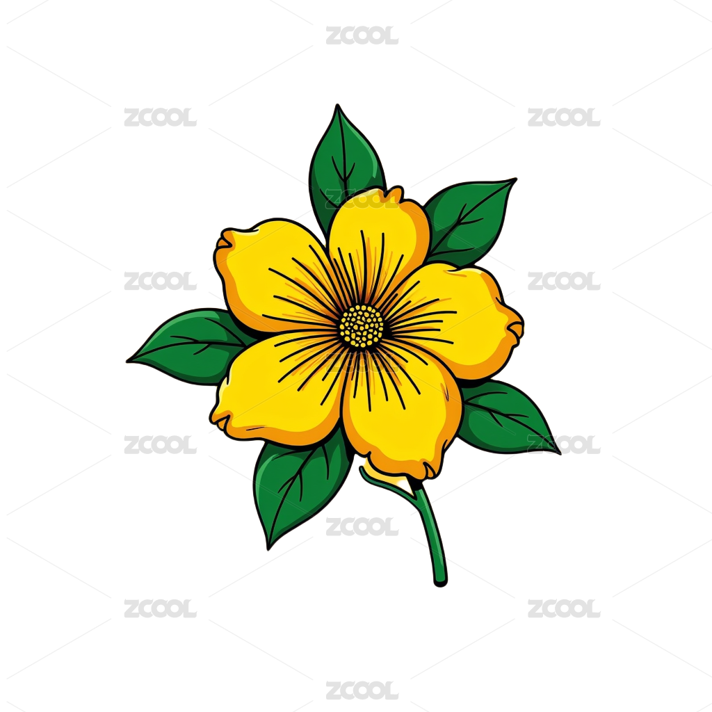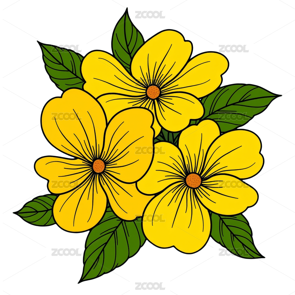 母亲节主题线条艺术花卉和绿叶PNG免抠素材
