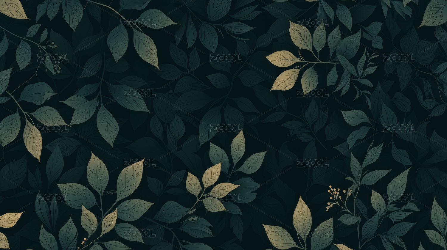 深绿与米白的植物纹理