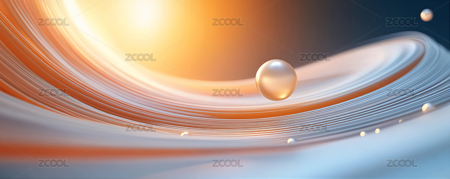 抽象橙白波浪与球体