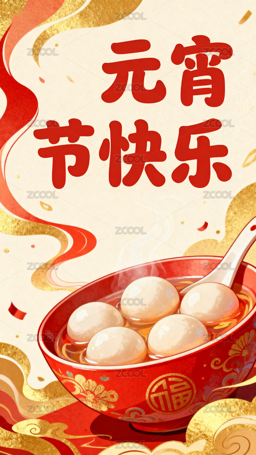 元宵快乐汤圆红包灯笼送福欢庆矢量插画海报