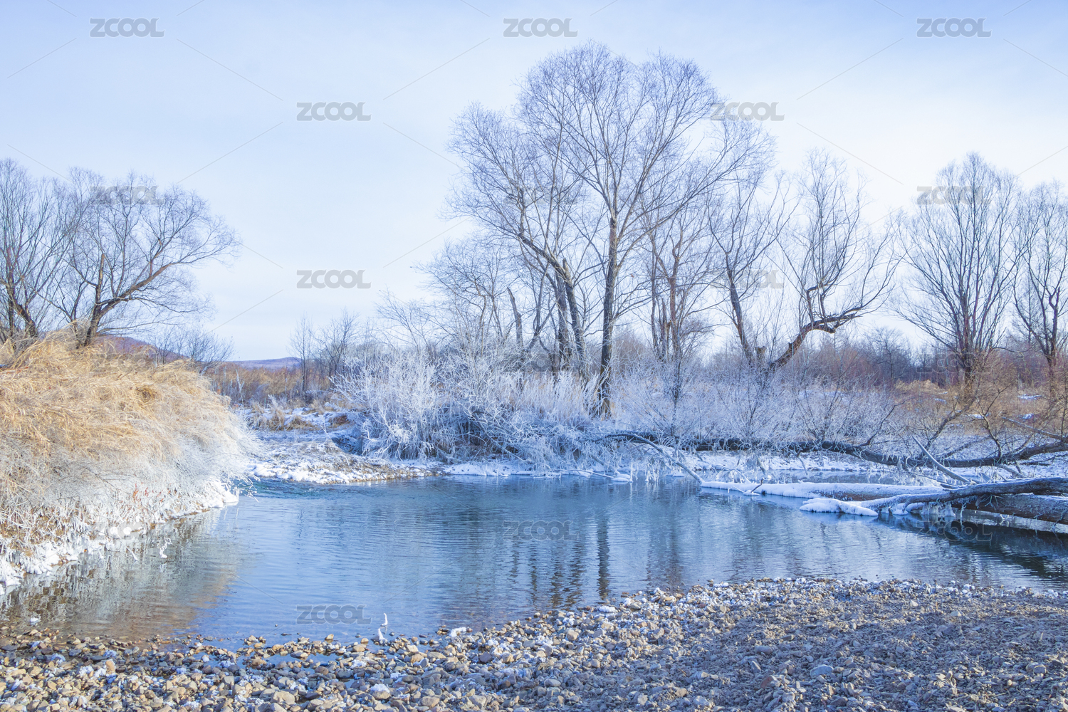冬季,黑河逊克平台村库尔滨河畔的雾淞美景