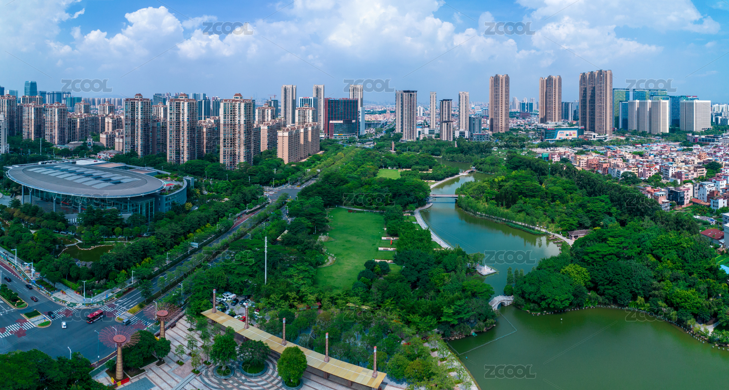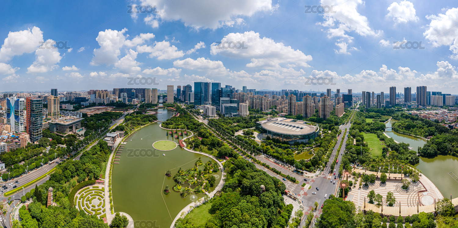 航拍佛山千灯湖和金融高新区城市天际线全景