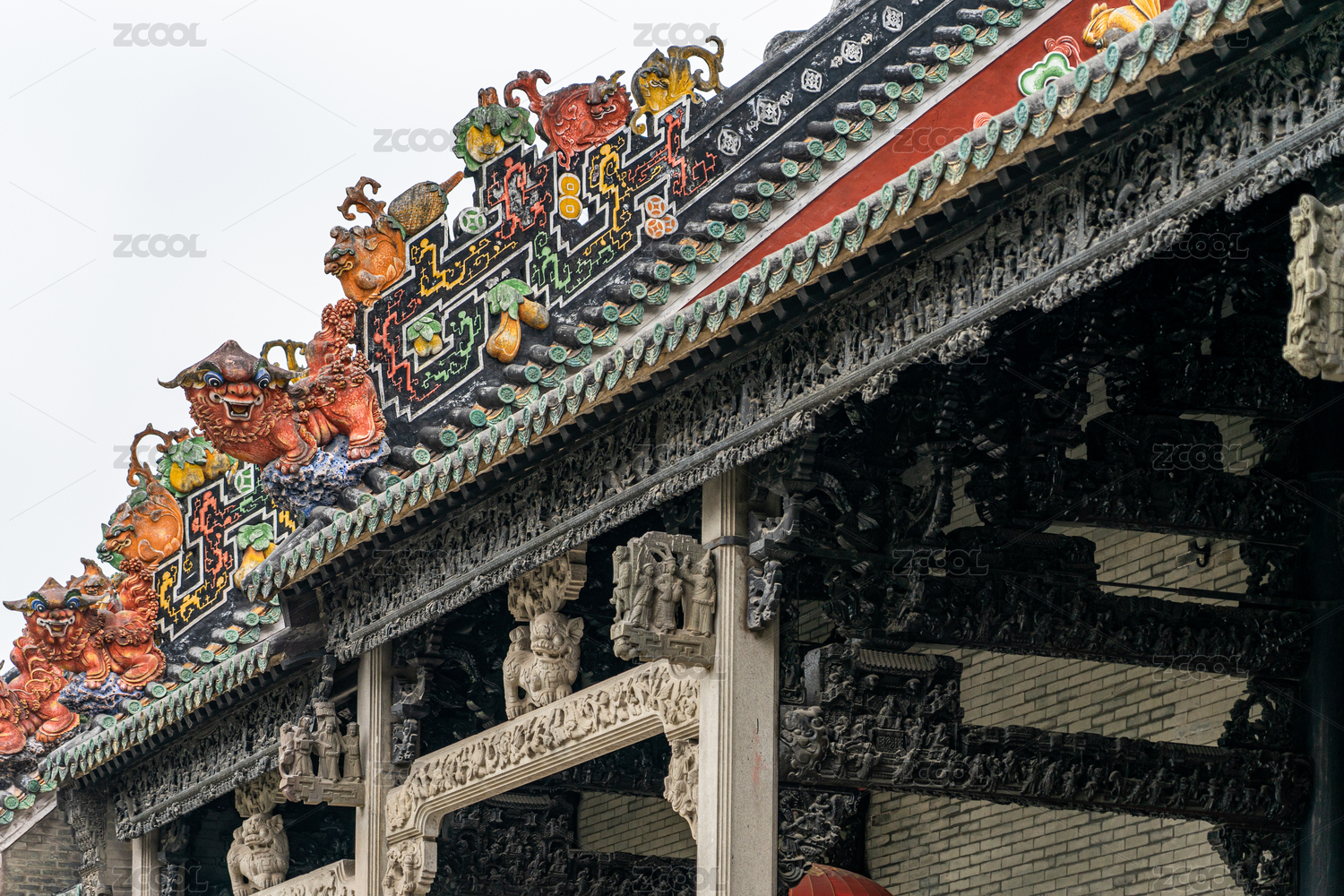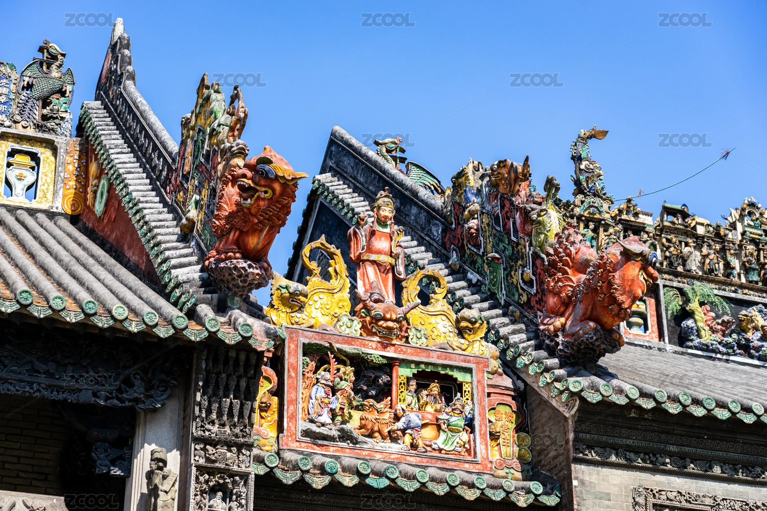 中国广州陈家祠岭南建筑屋顶灰塑陶塑