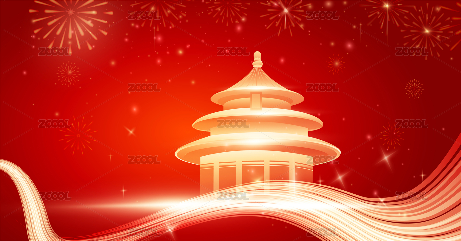 中国国庆节北京城市天坛祈年殿庆典海报