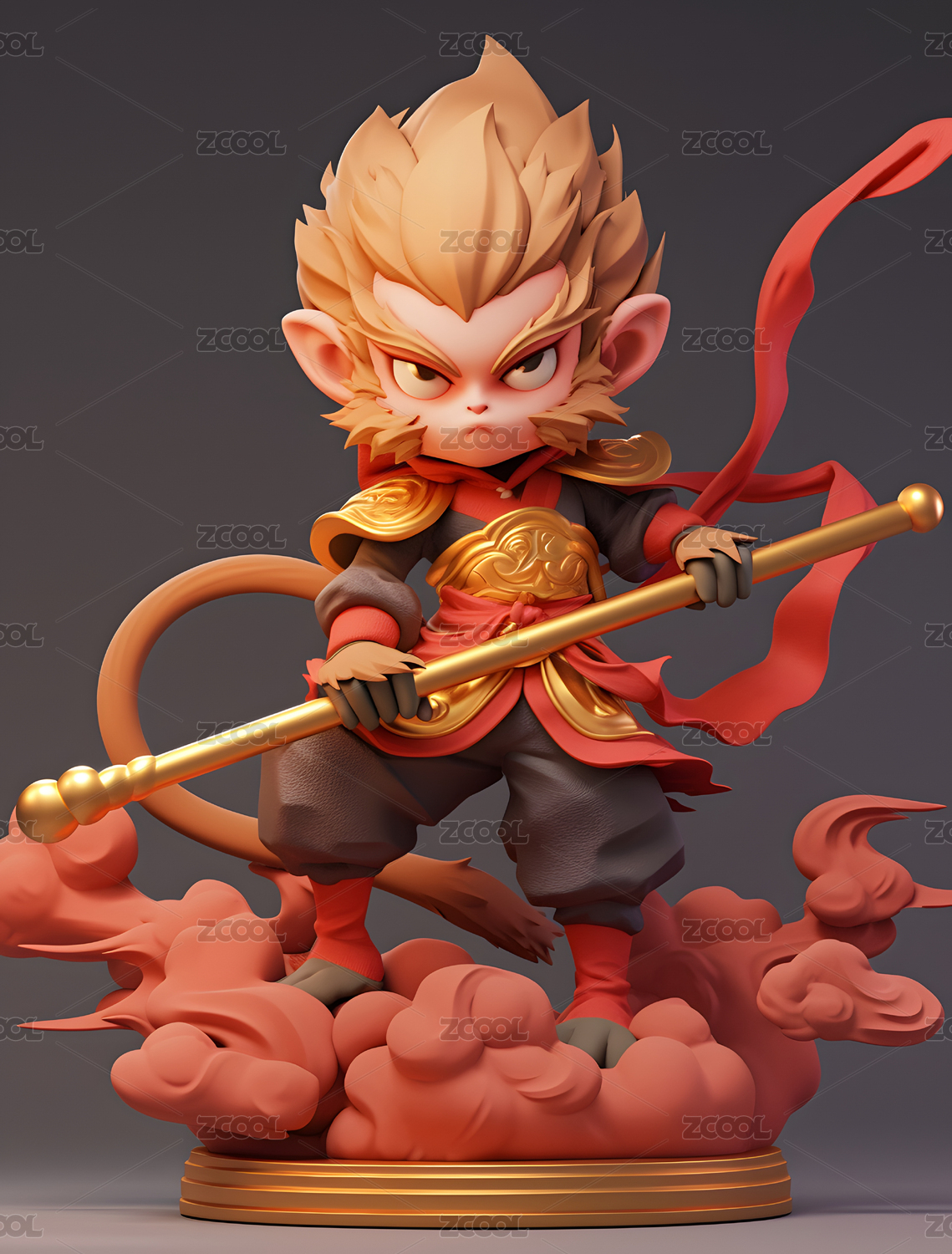 手拿金箍棒的可爱孙悟空3D卡通立体插画
