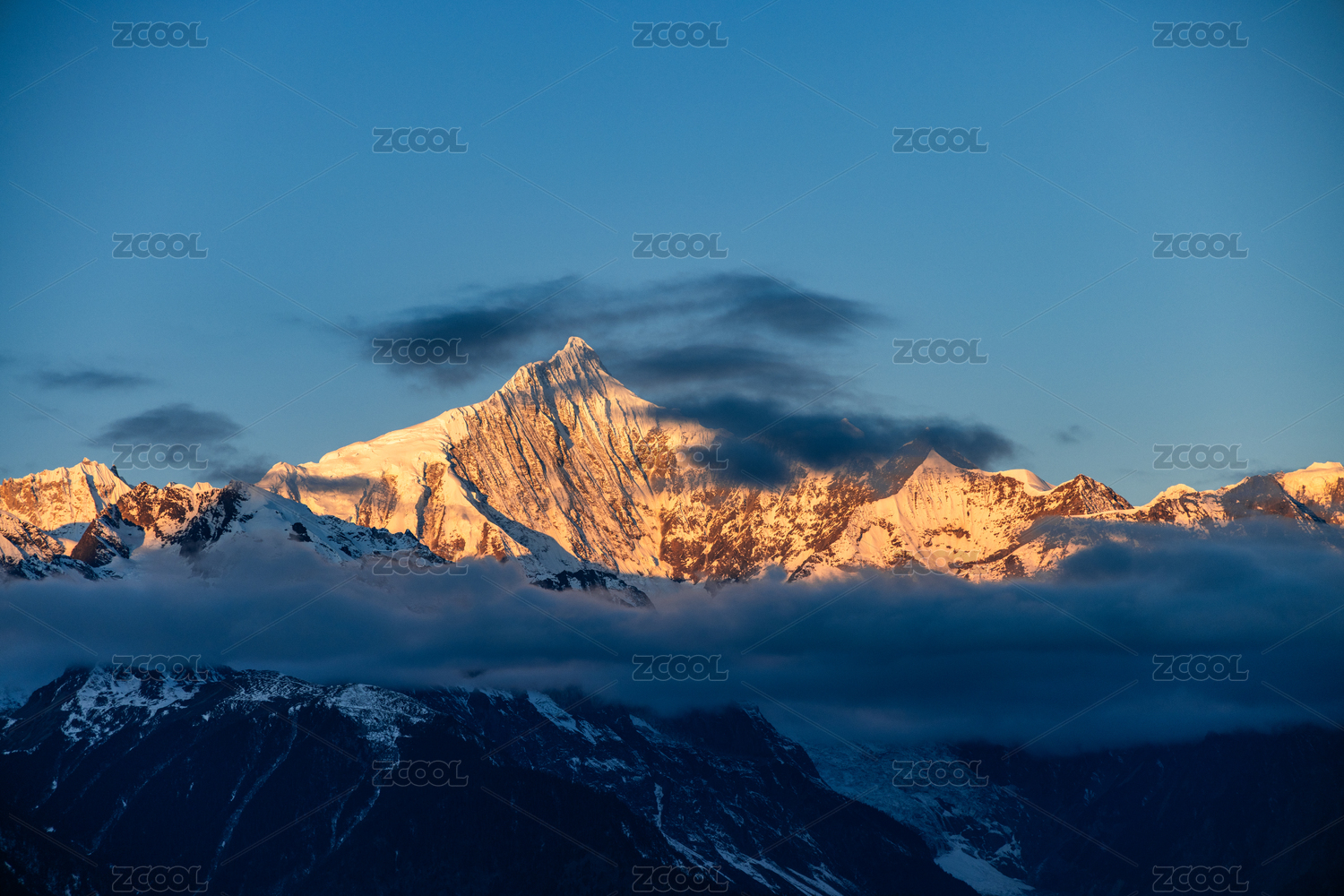 云南德钦梅里雪山卡瓦格博山峰与蓝天