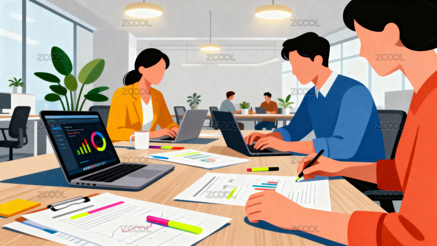 职业规划年终总结商务办公概念俯视图背景矢量插画