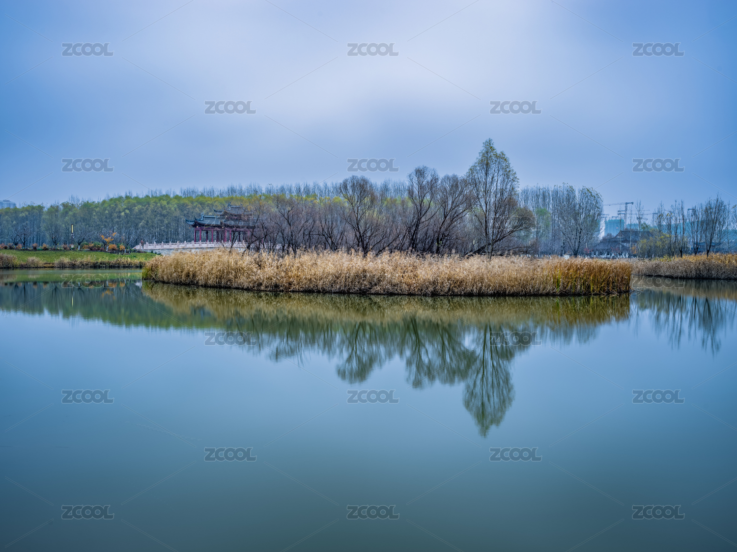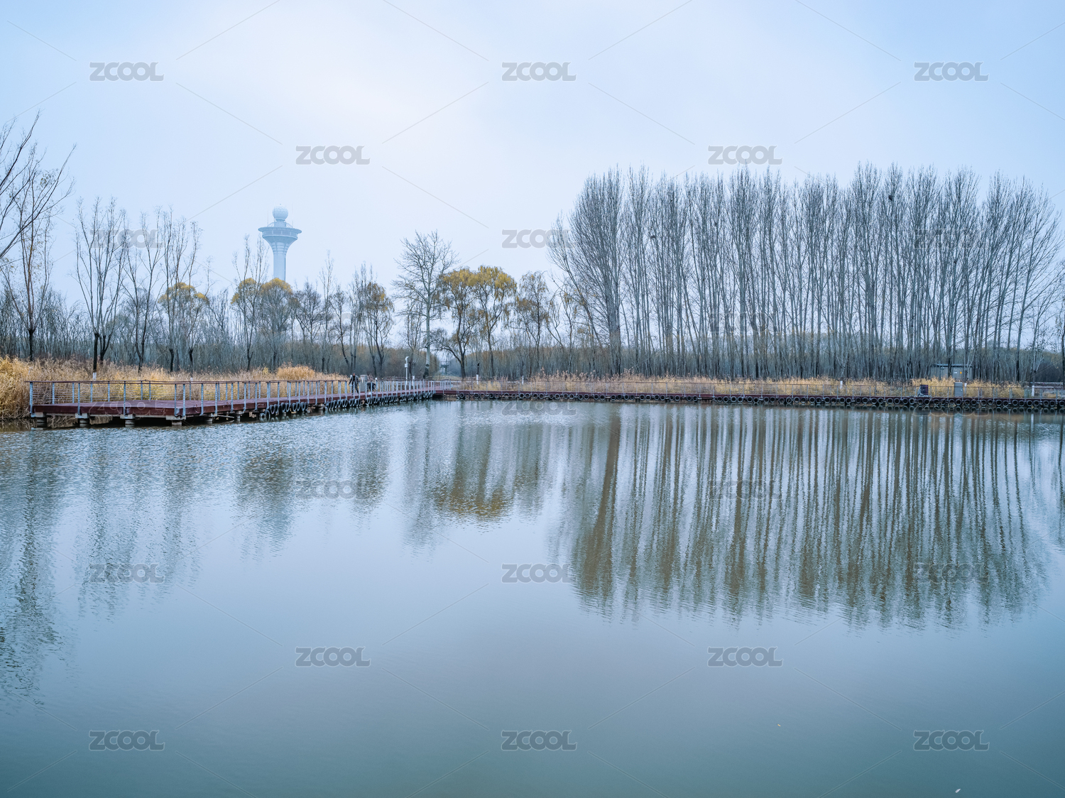 初冬,漳泽湖湿地公园,慢门,宁静,塔,反射,倒影,全景,长治,残荷