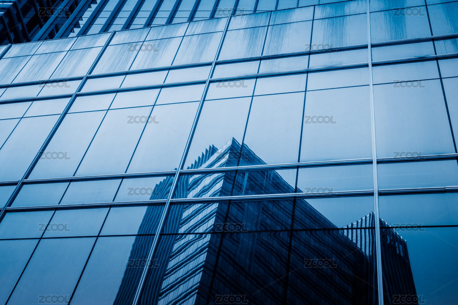 在上海关闭了玻璃建筑细节,china.blue色调图像。