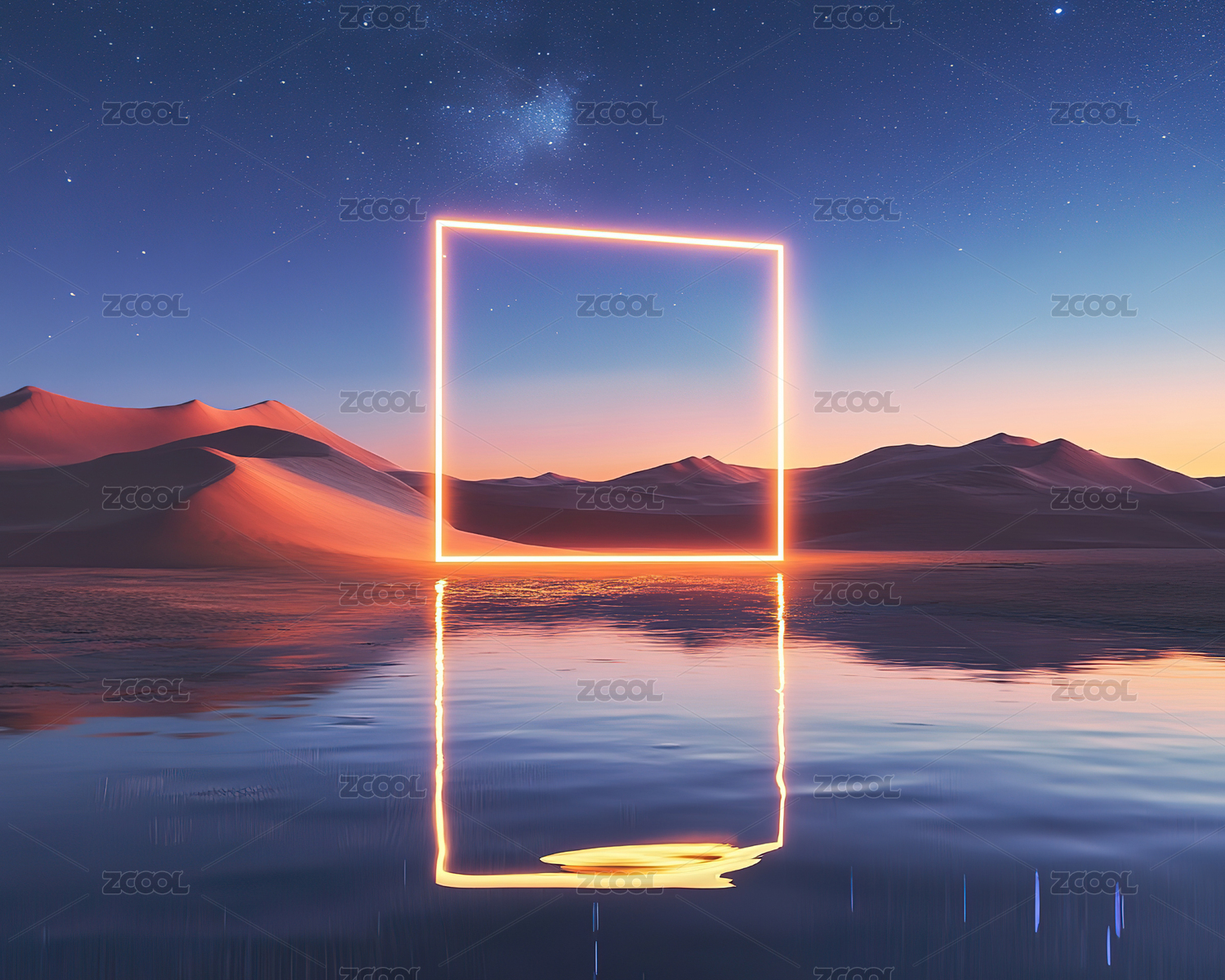 3D渲染沙漠中的霓虹灯管概念艺术场景