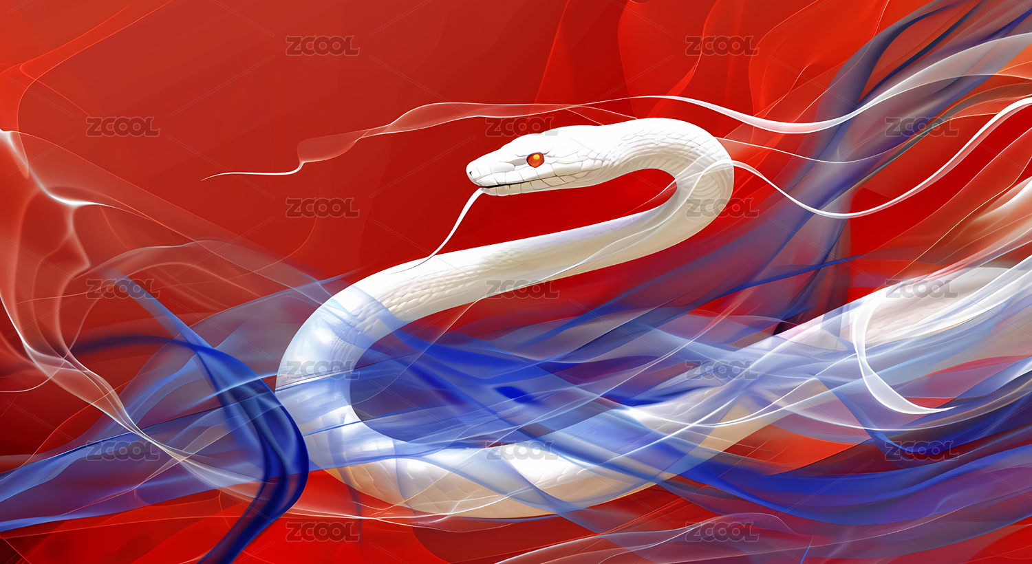 概念,白色,蛇,12生肖,红色,背景,蓝色,飘带,曲线,动感