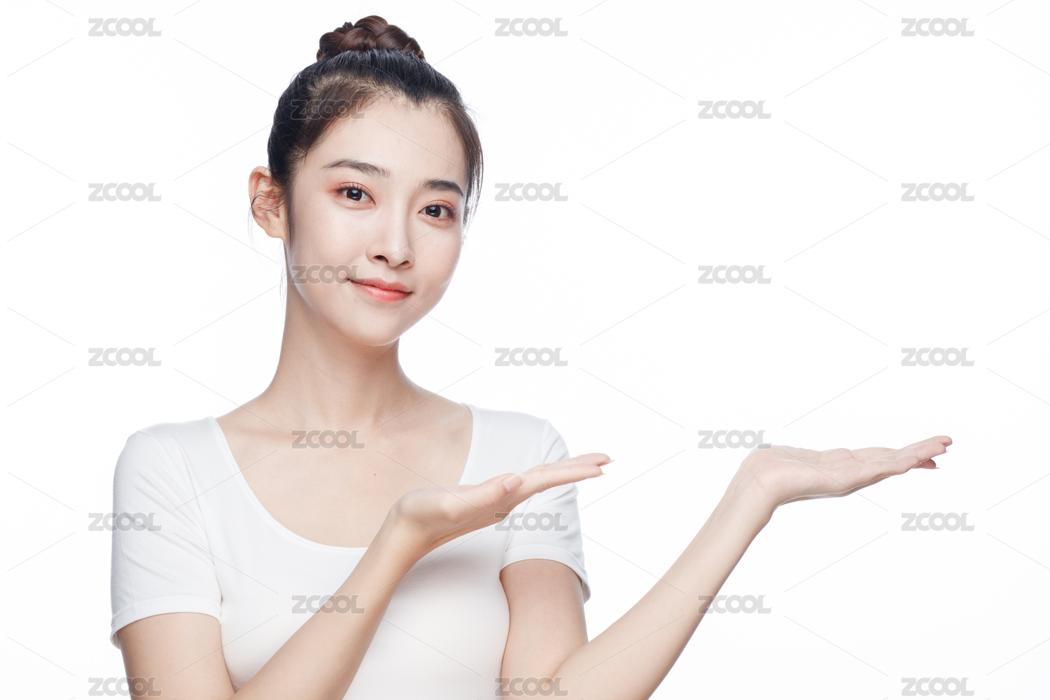 亚洲美女护肤概念白色背景半身肖像