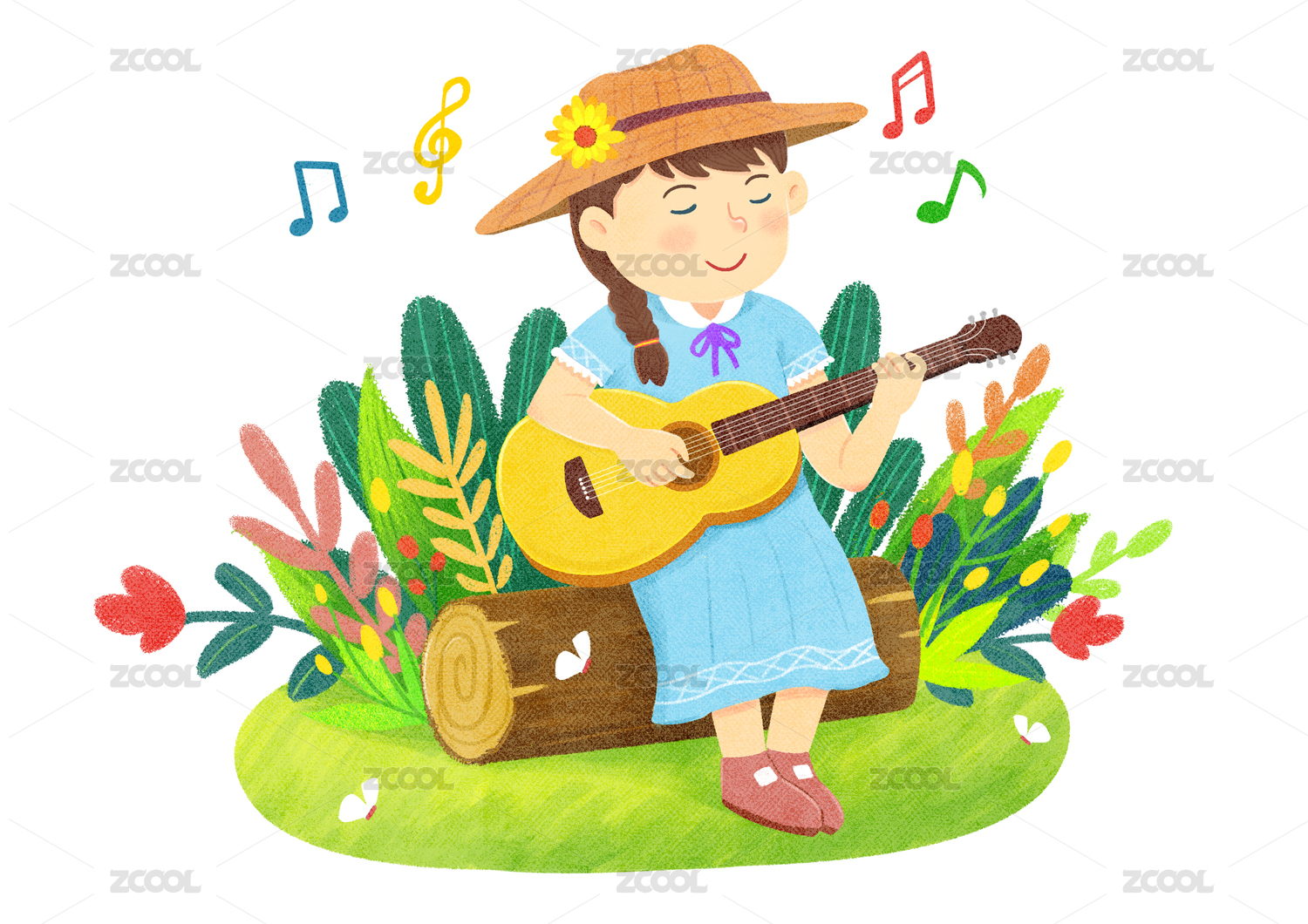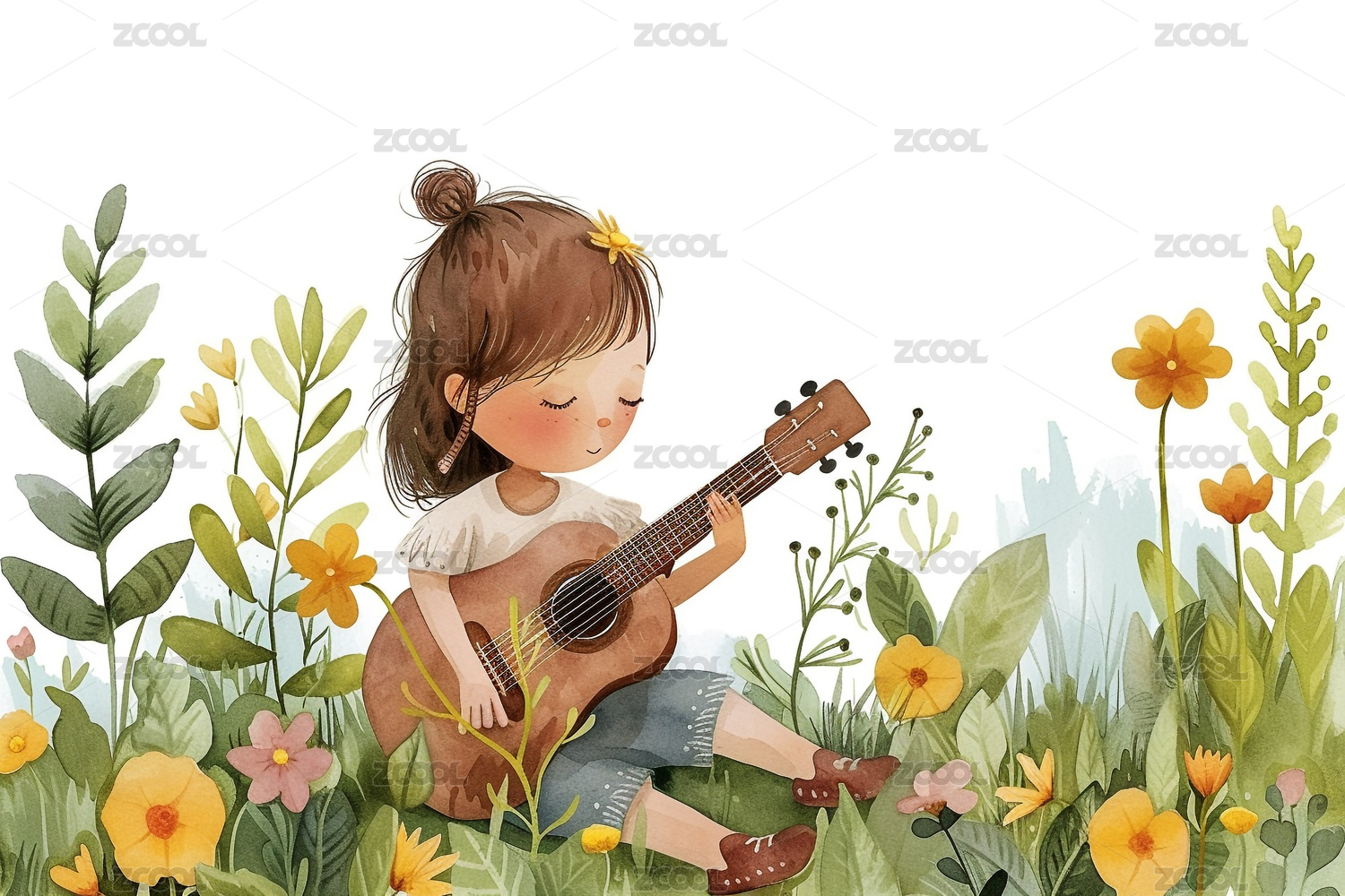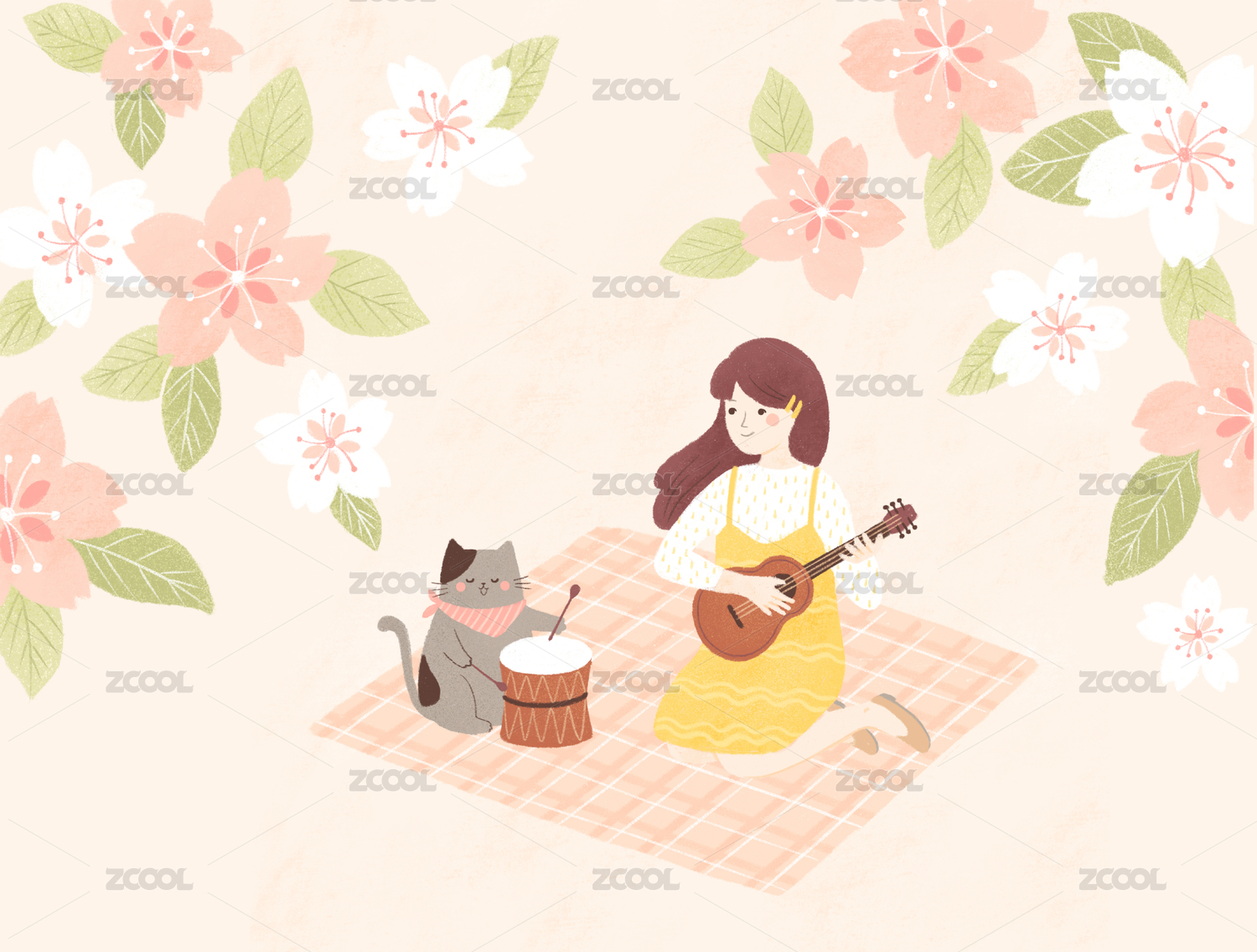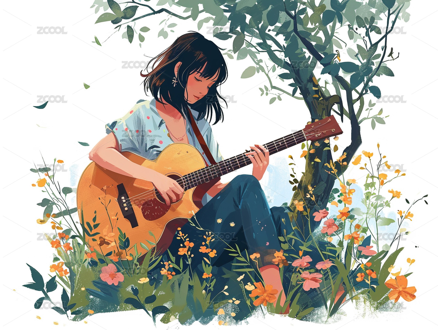 春日,弹吉他,女孩,春游,文艺,音乐,吉他,弹吉他的女孩,郊游,植物