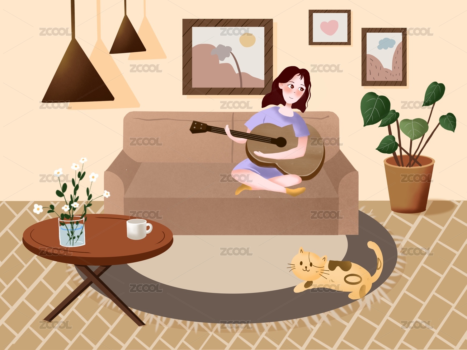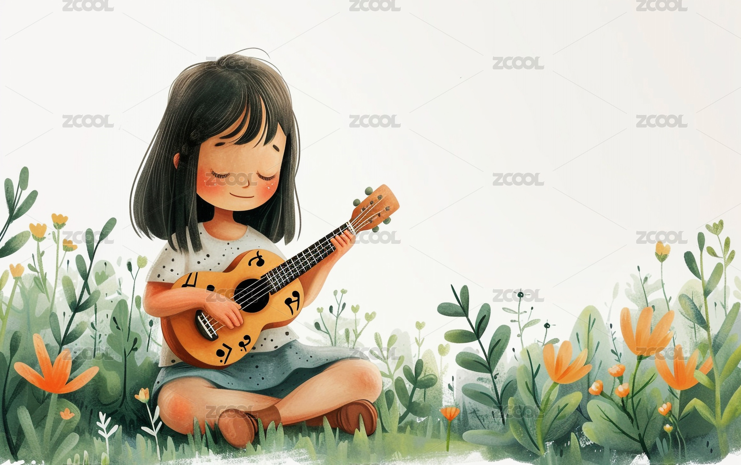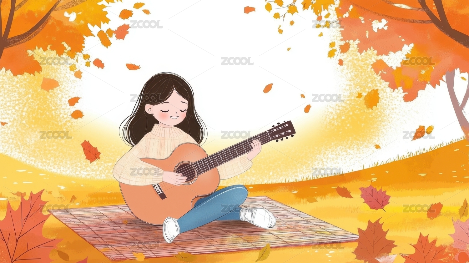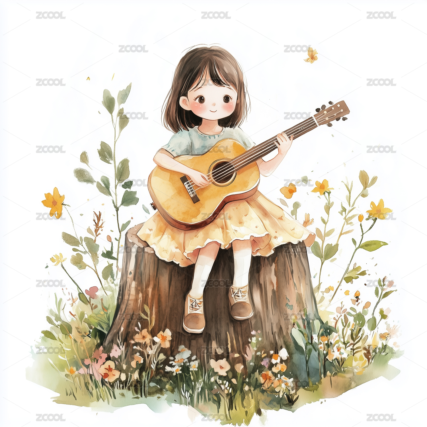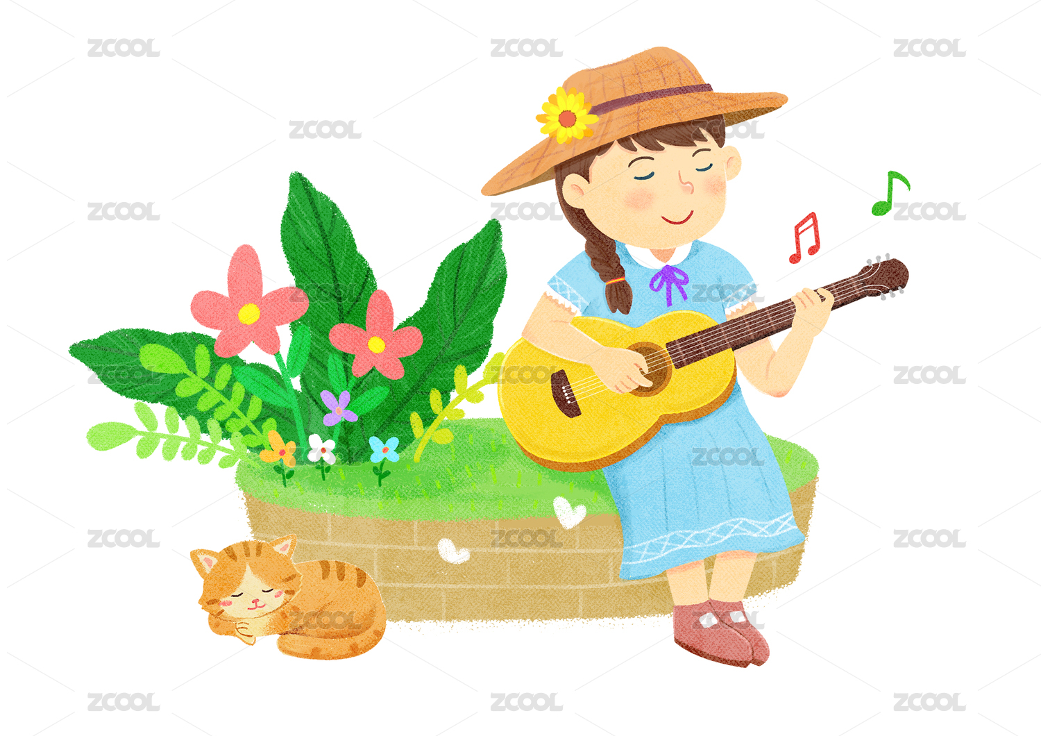 春日,弹吉他,女孩,春游,文艺,音乐,吉他,弹吉他的女孩,郊游,植物