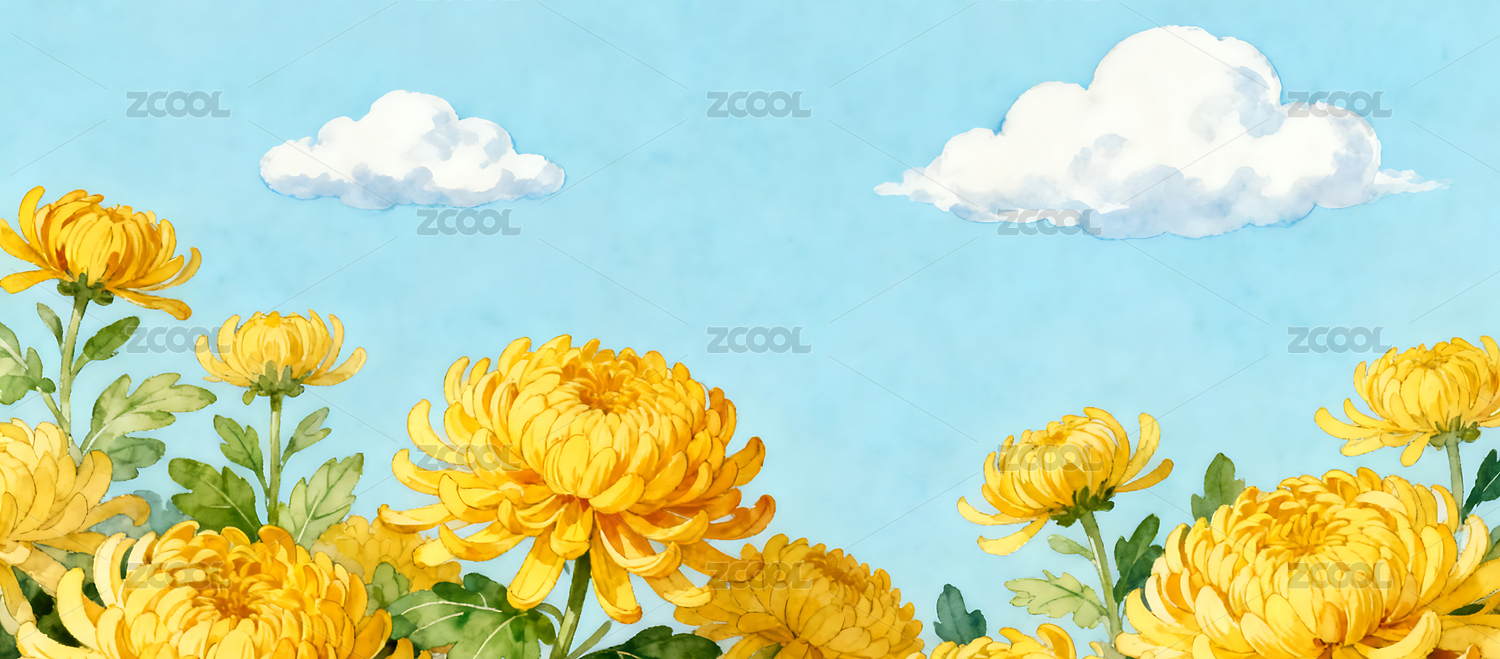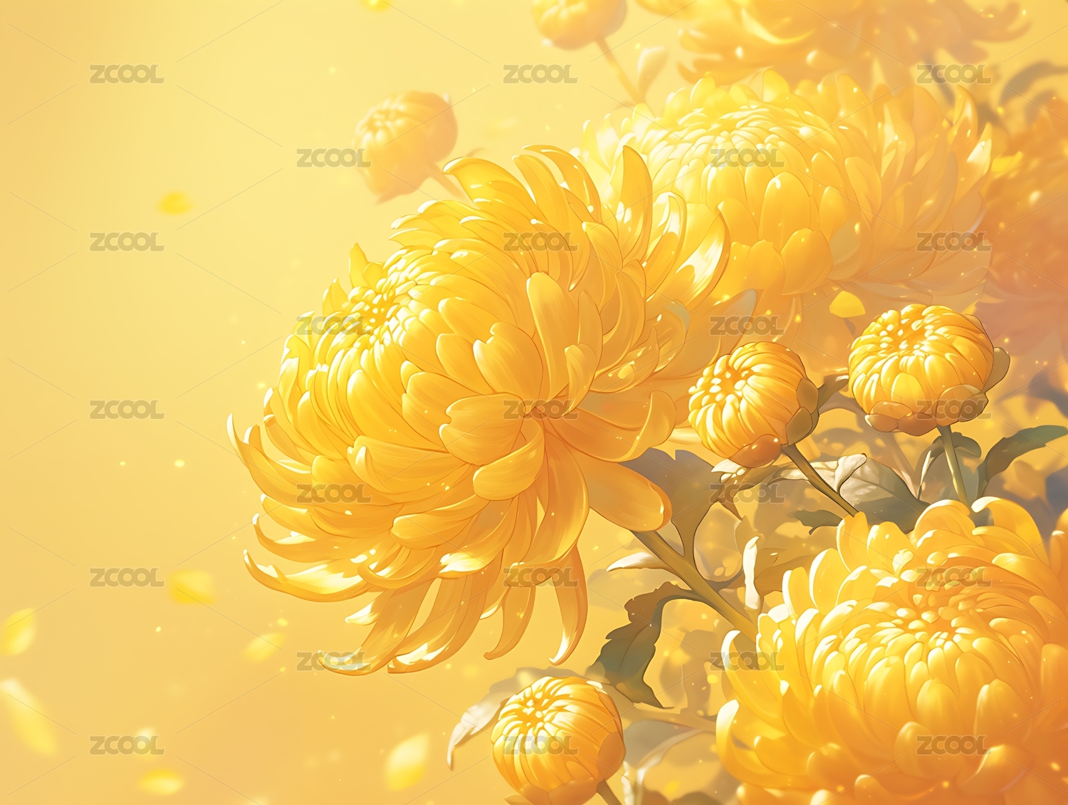 菊花,秋天,金色,远山,山峰,山脉,花瓣,盛开,插画,花卉