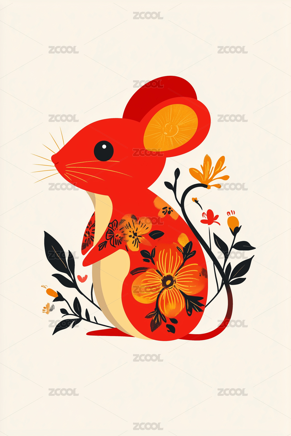 十二生肖,属相,剪纸,红色,民俗文化,动物,老鼠,子鼠,喜庆,国风
