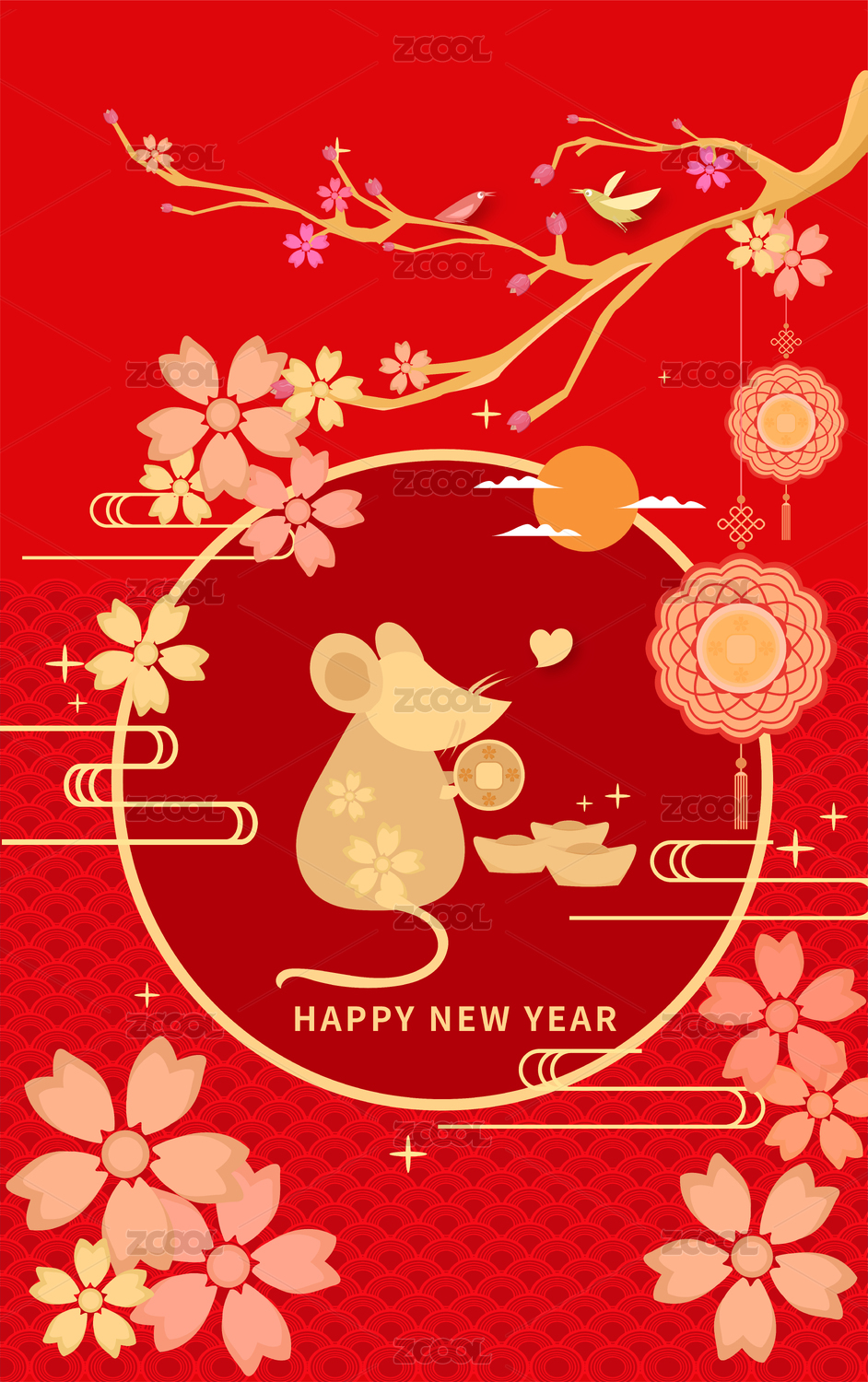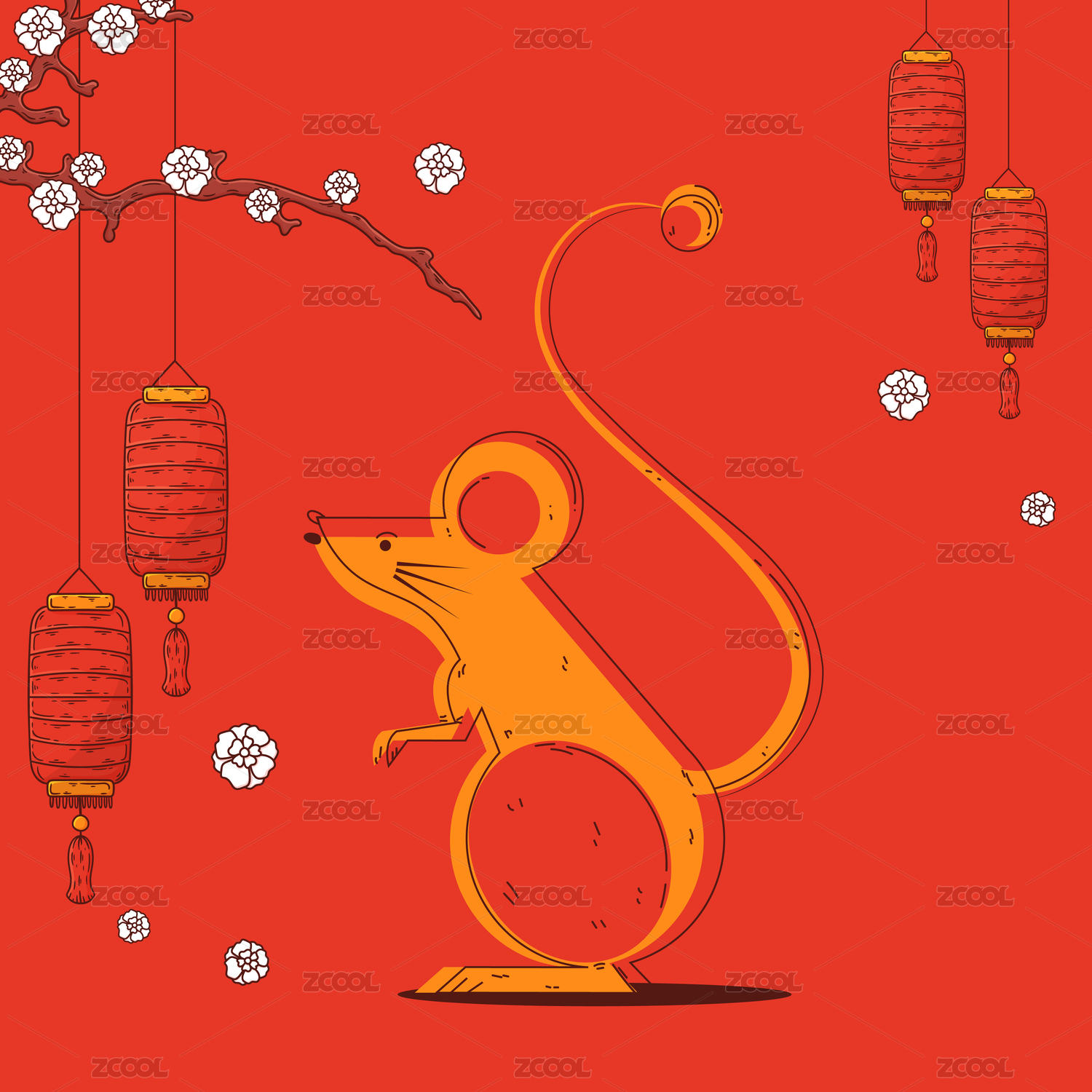 金鼠贺岁新年2020年鼠年春节海报插画背景