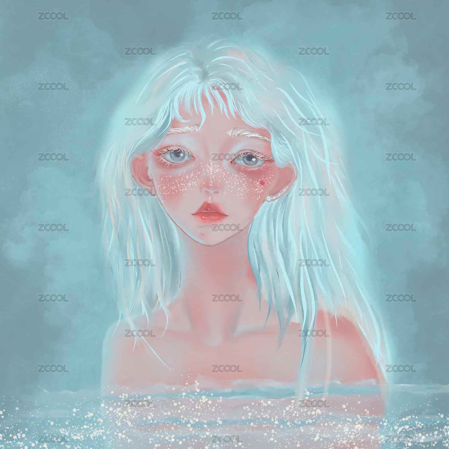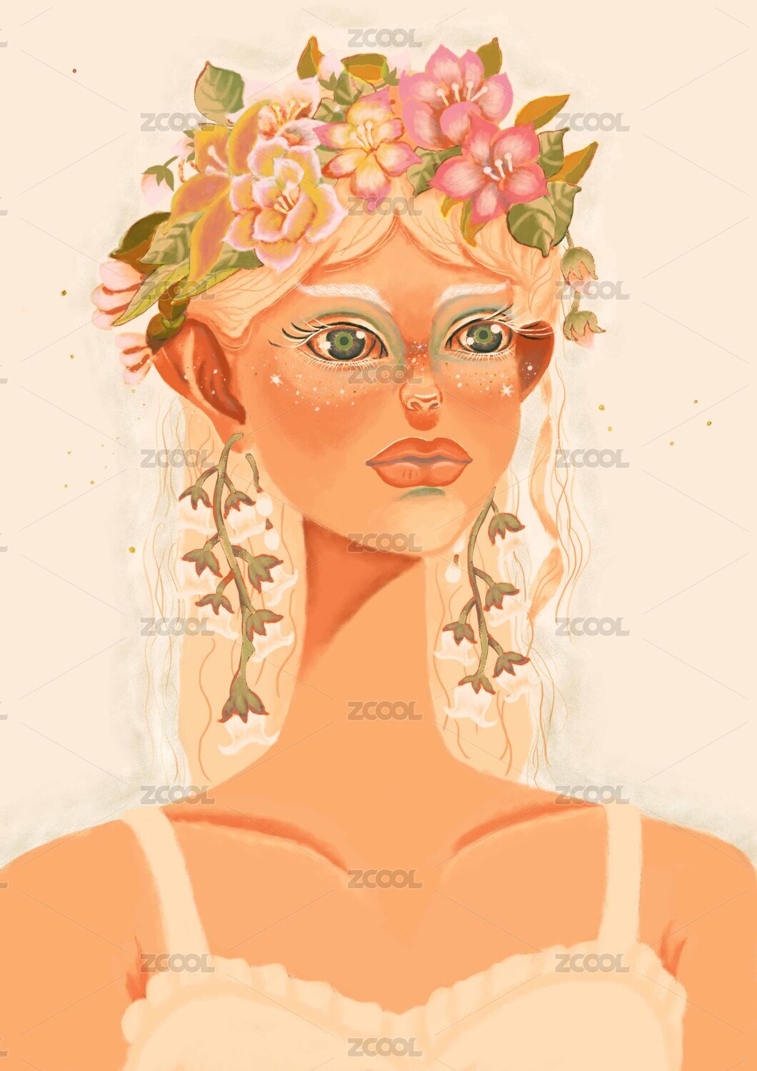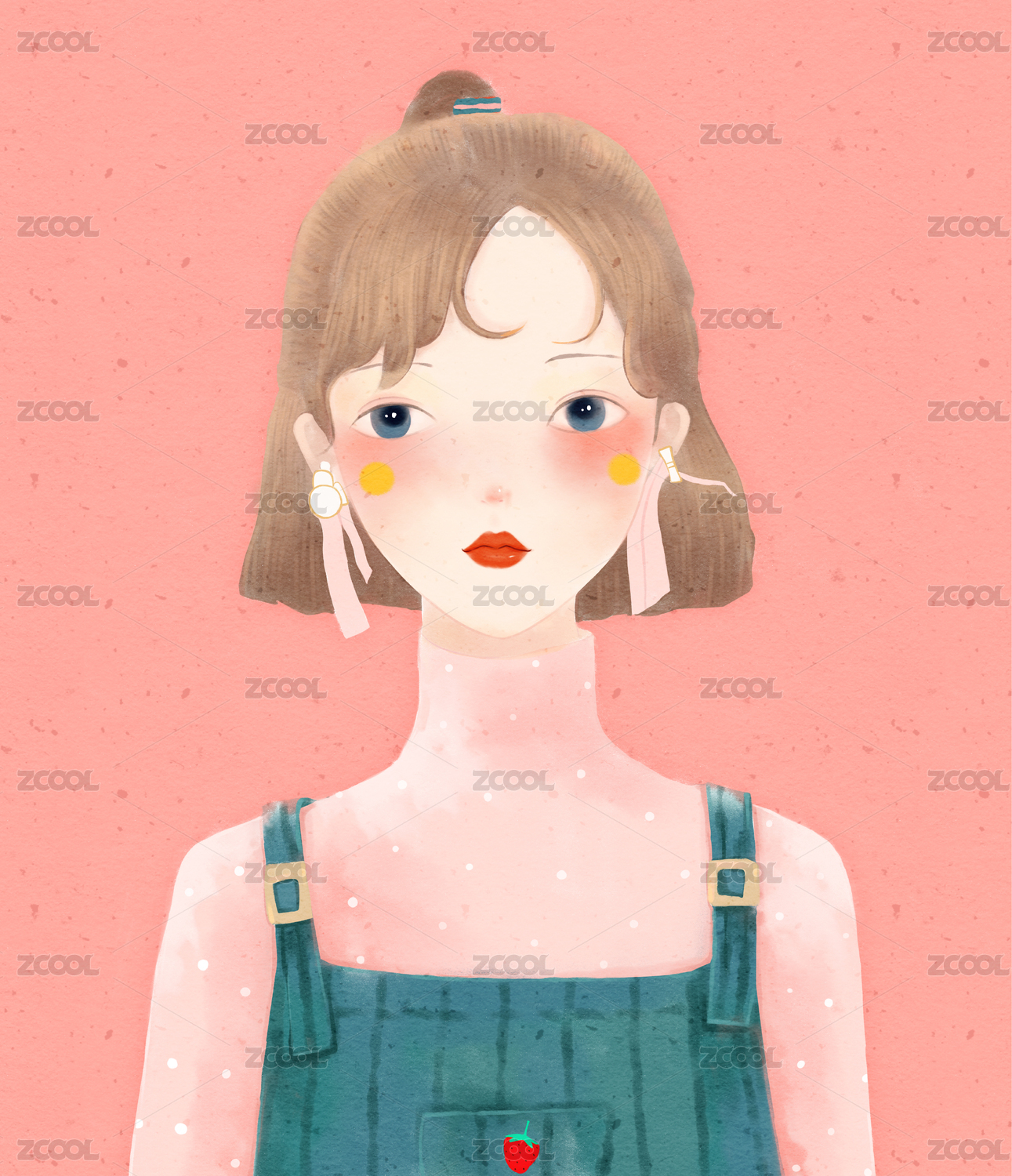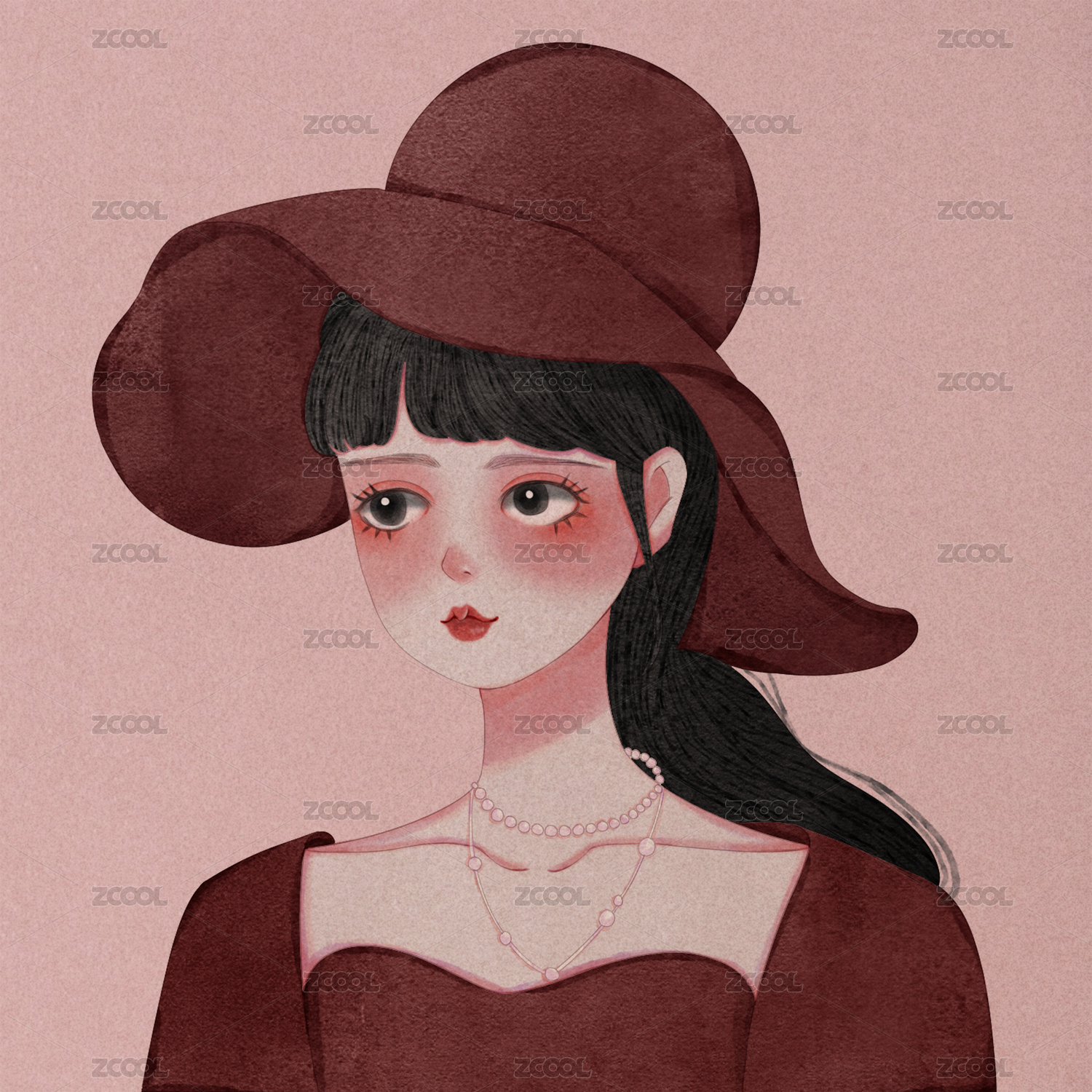 粉红少女时尚肖像大头照矢量扁平化设计背景