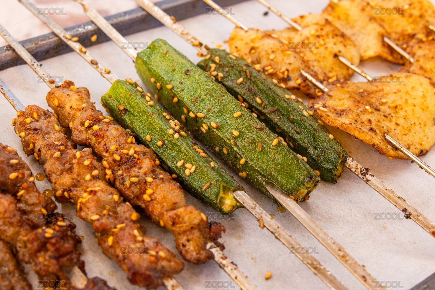 豆角,豇豆,油炸豇豆,豇豆烤串,孜然,辣椒面,烤架,铁网,铁篦子,支架