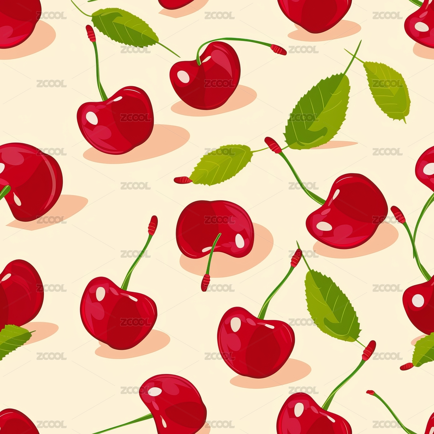 夏日樱桃水果系列手绘插画无缝壁纸背景
