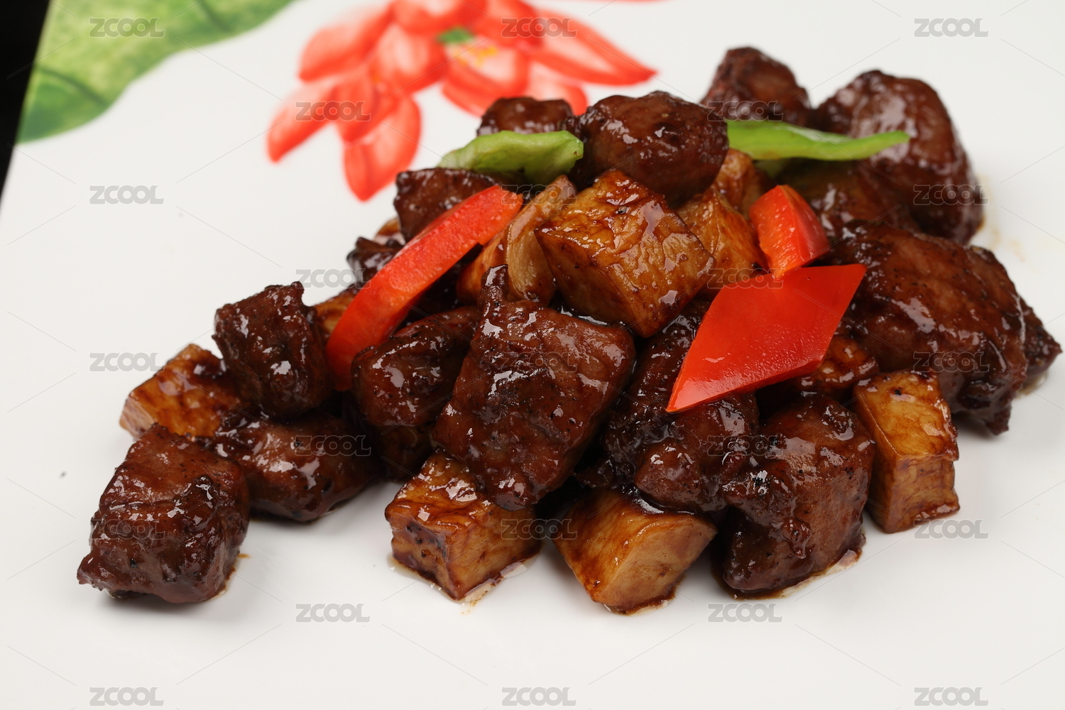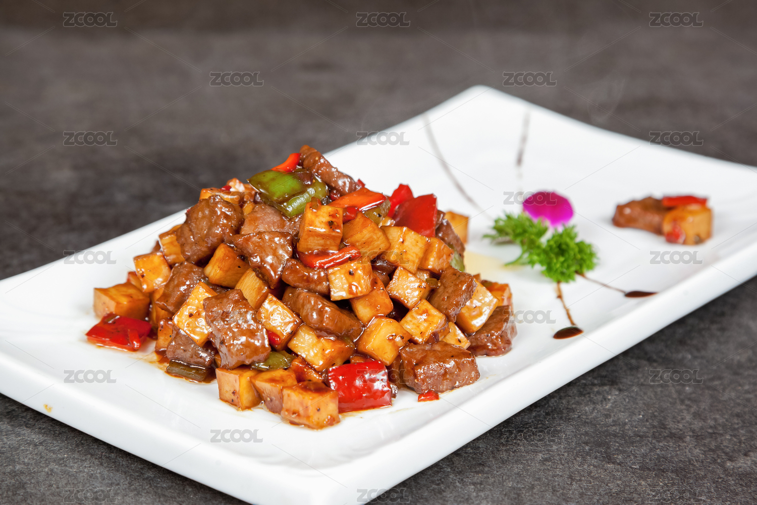 中国广东的一道热菜——杏鲍菇牛仔粒