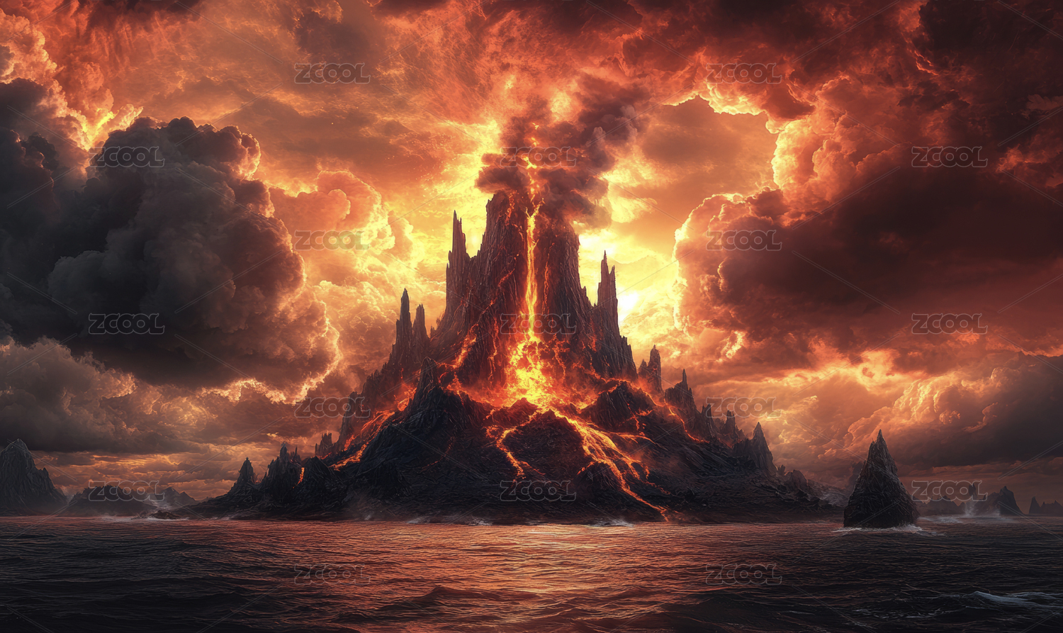 火山爆发的熔岩山谷