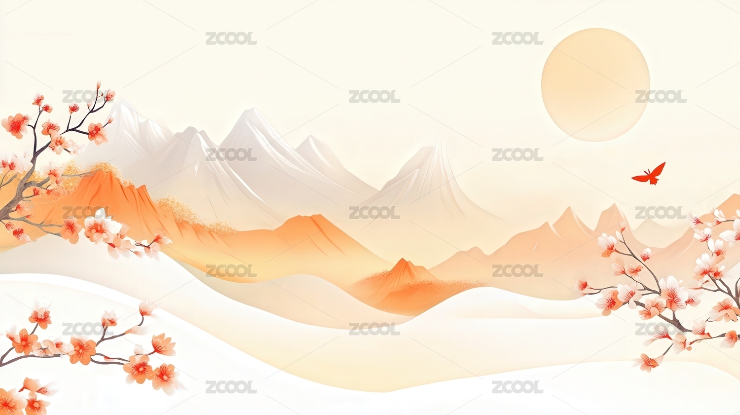 AIGC202406,重阳节,仙鹤,菊花,风景,花朵,插画,国风,山脉,树