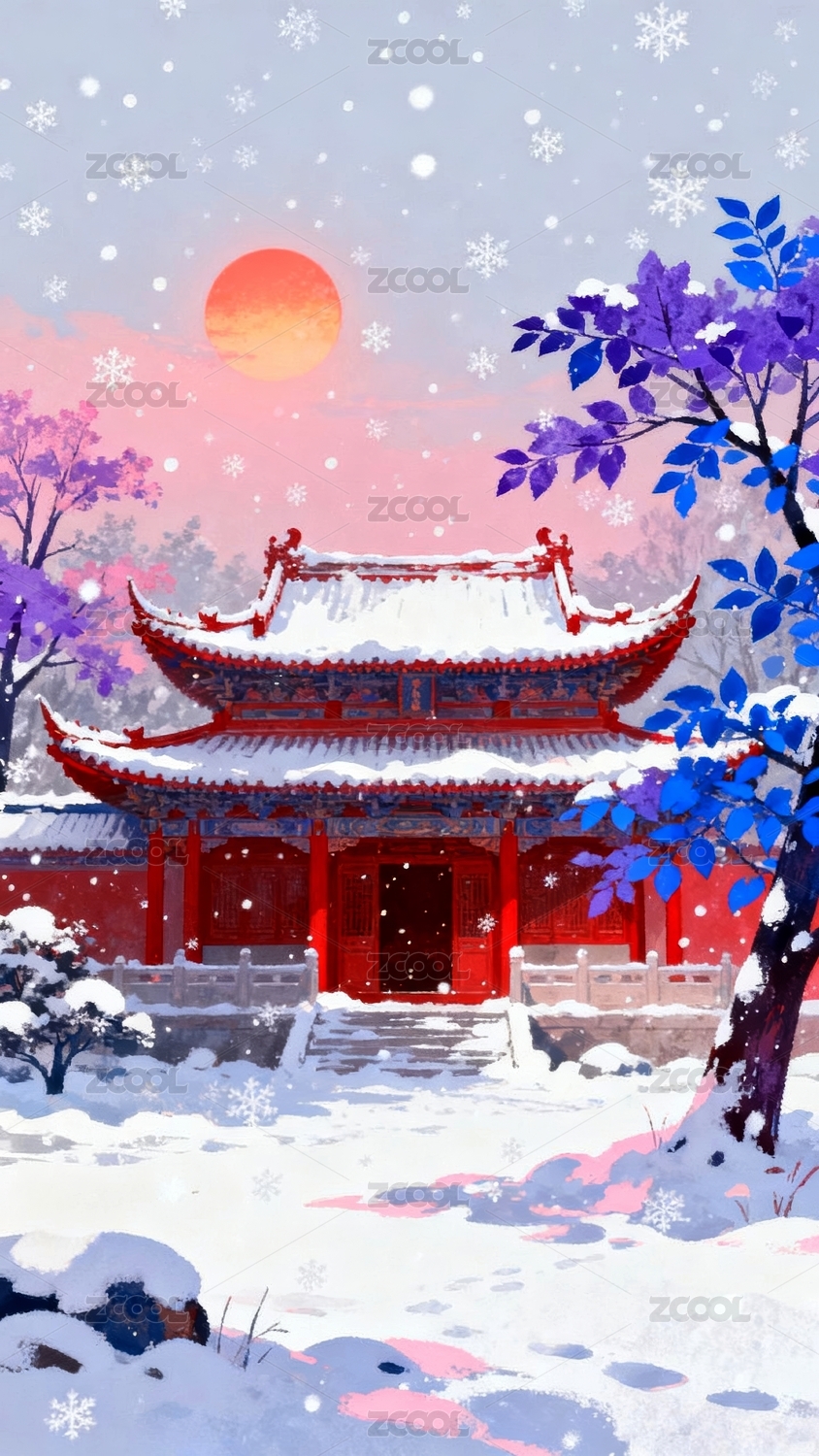 冬季主题雪景大雪冰天雪地节日氛围插画