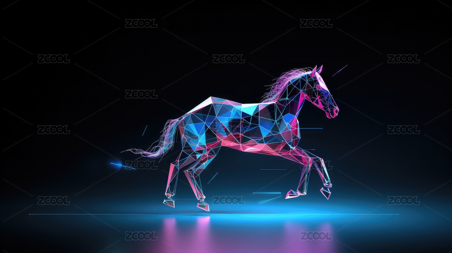 骏马,光点,粒子,梦幻,斑斓,彩虹,炫彩,科技感,抽象,艺术