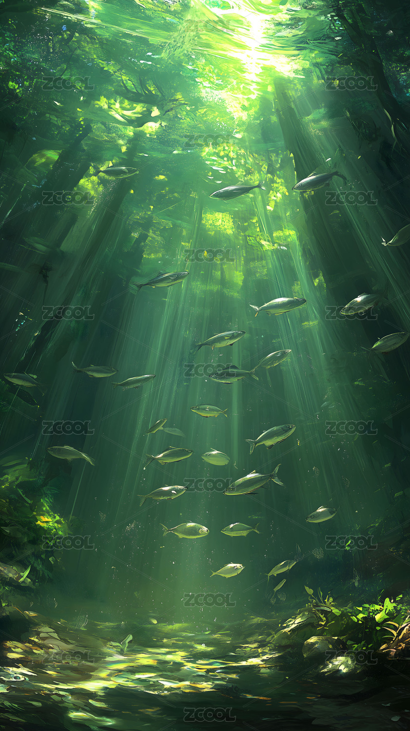 森林秘境藏清溪,锦鲤悠游伴光舞