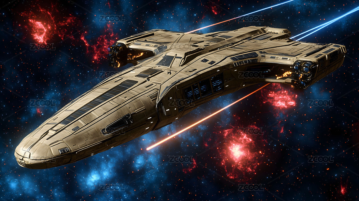 唯美的宇宙星辰中航行的巨大的飞船插画
