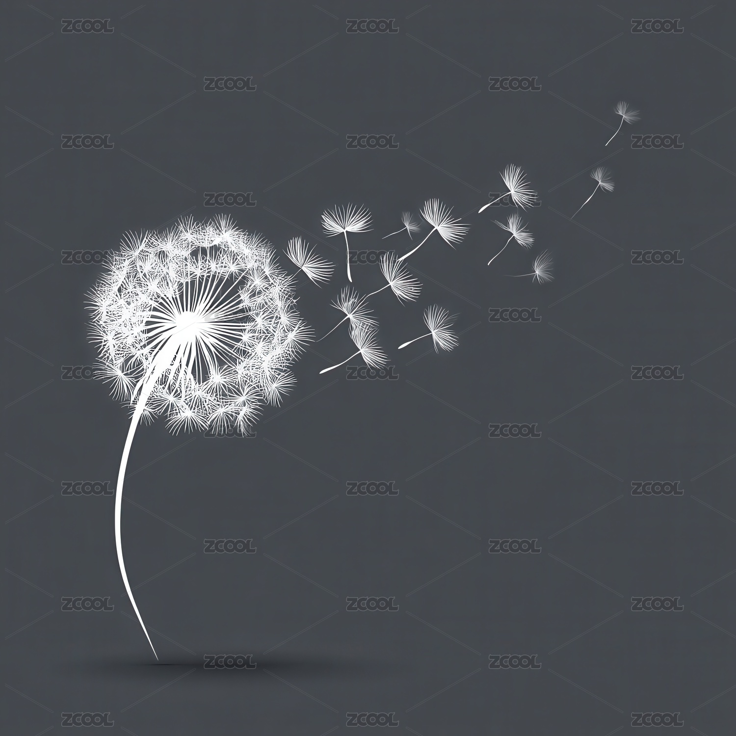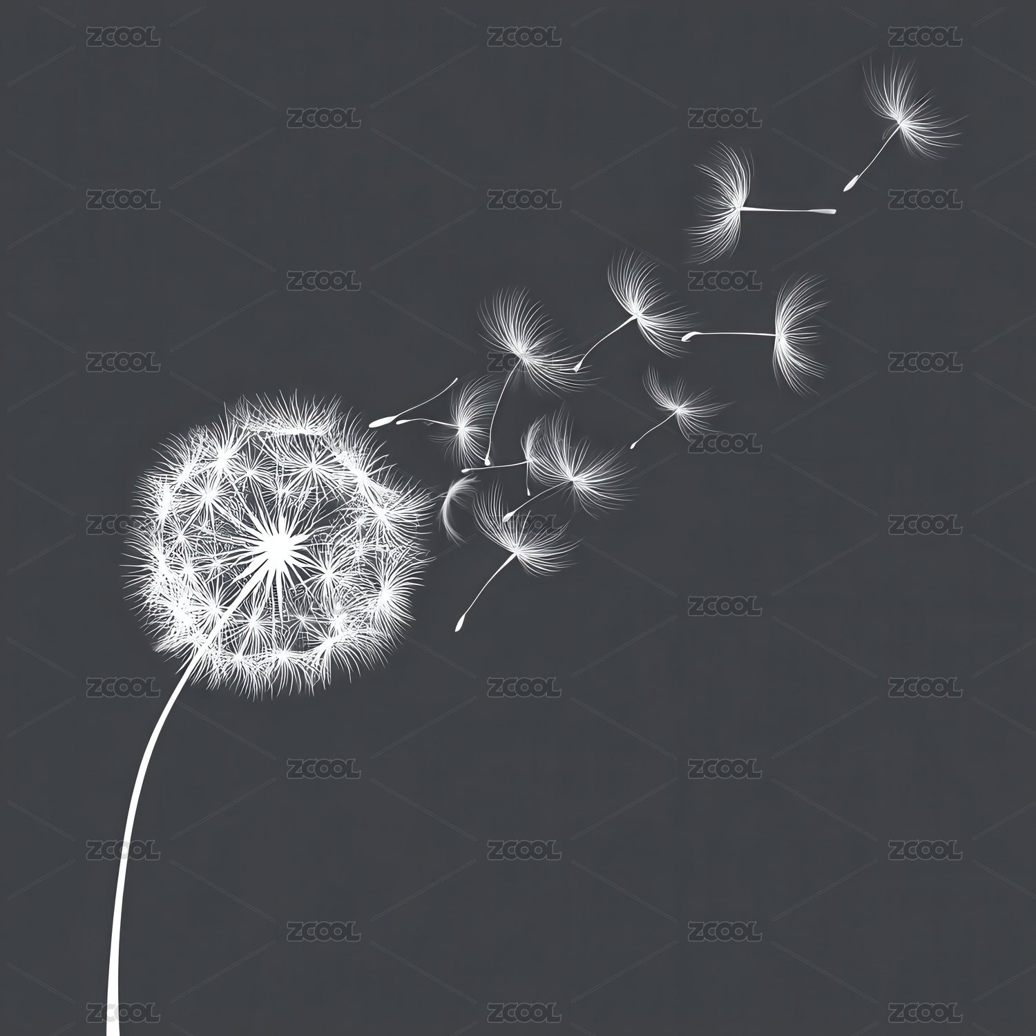 深色背景下飘散的白色蒲公英